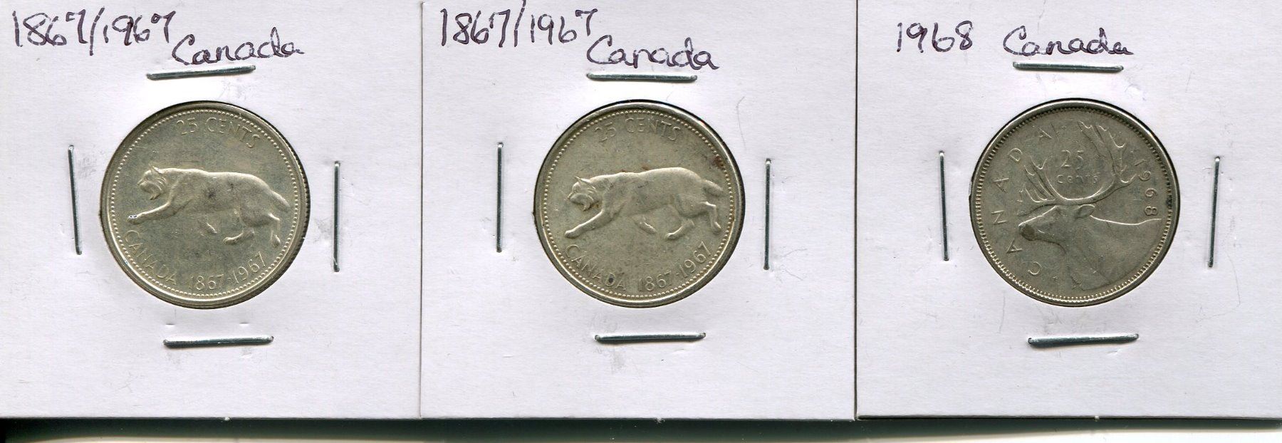 LOT OF 3 CNDN 25 CENT PCS (1967 X2, 1968)