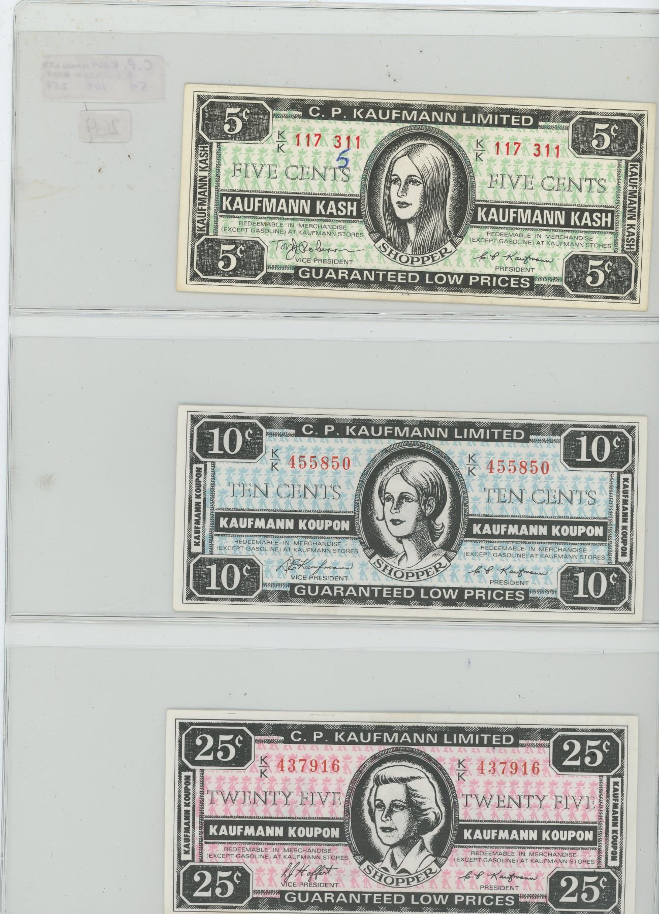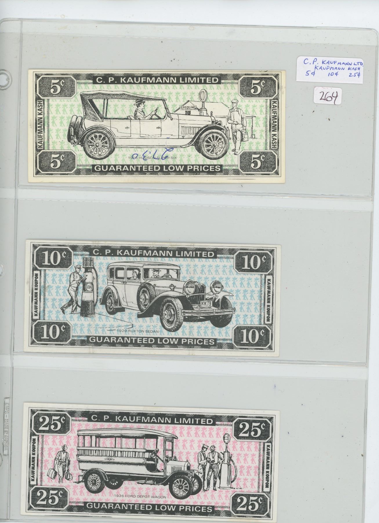 LOT OF 3 DIFFERENT C.P. KAUFMANN LTD KAUFMANN KASH SCRIP. INCLUDES 1916 HUDSON SUPER SIX 5 CENTS, 1929 RUXTON SEDAN 10 CENTS, & 1926 FORD DEPOT WAGON 25 CENTS.