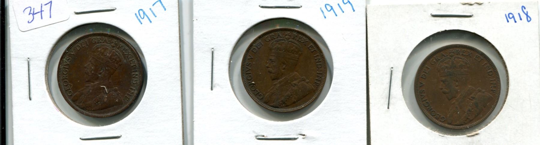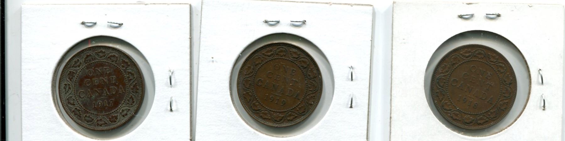 Lot of 3 Large Canada One Cent 1917-1918-1919