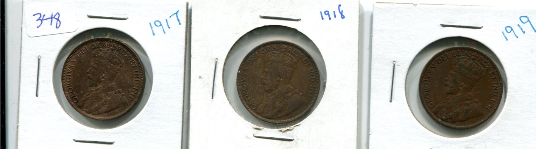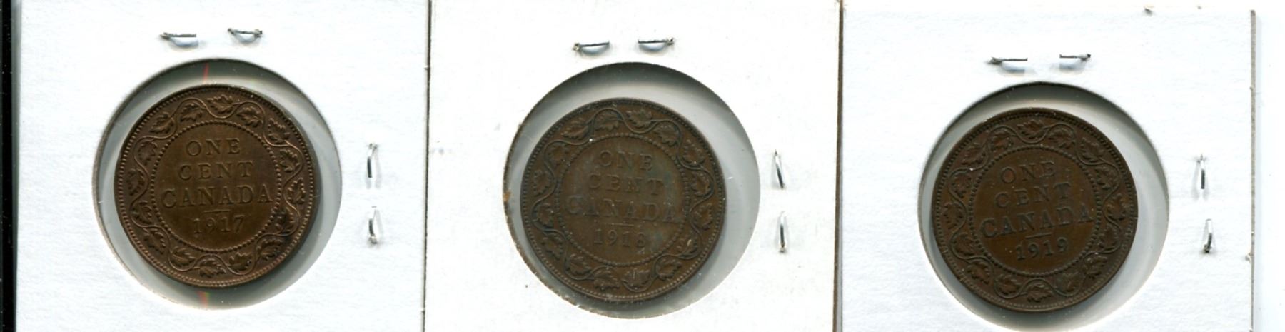 Lot of 3 Large Canada One Cent 1917-1918-1919