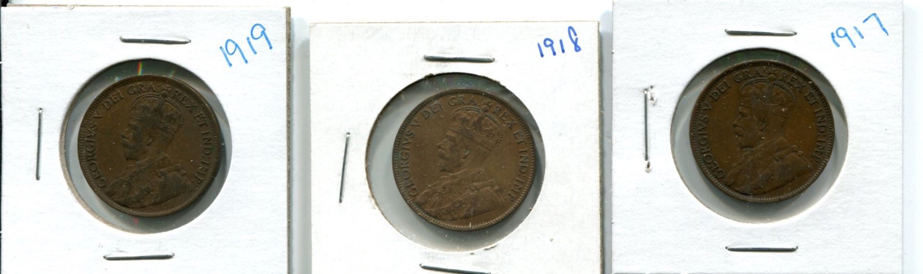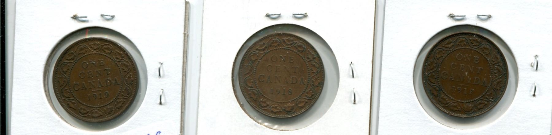 Lot of 3 Large Canada One Cent 1917-1918-1919