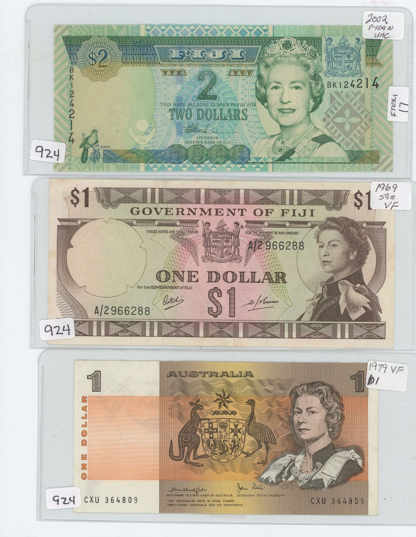 LOT OF 3 NOTES FIJI & AUSTRALIA