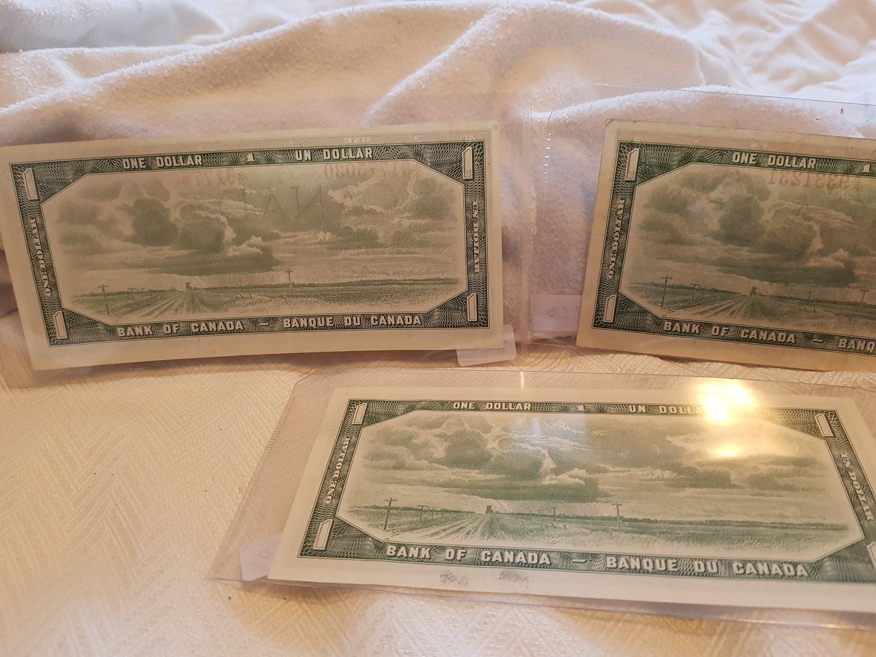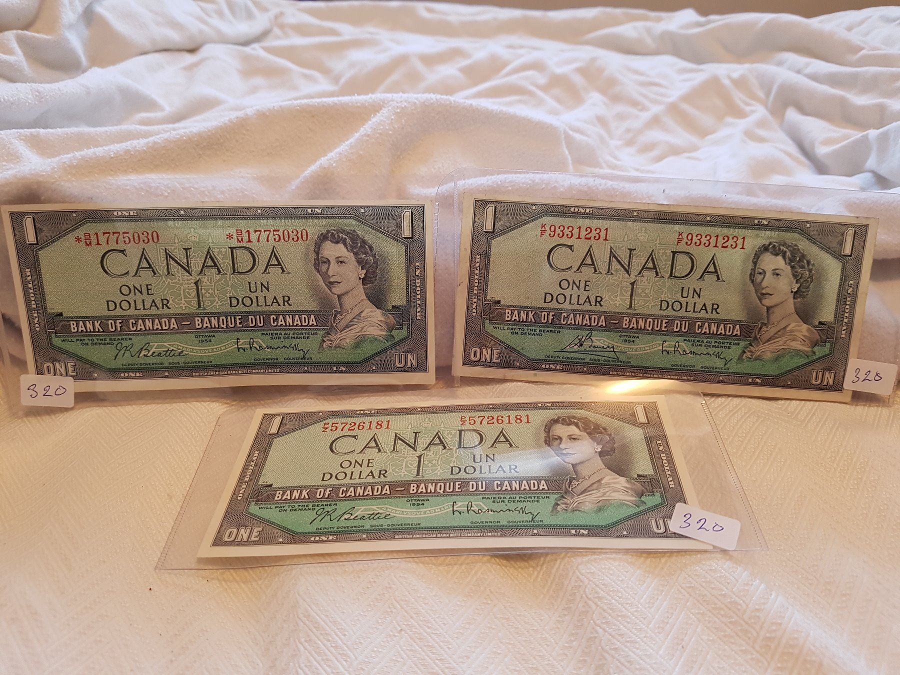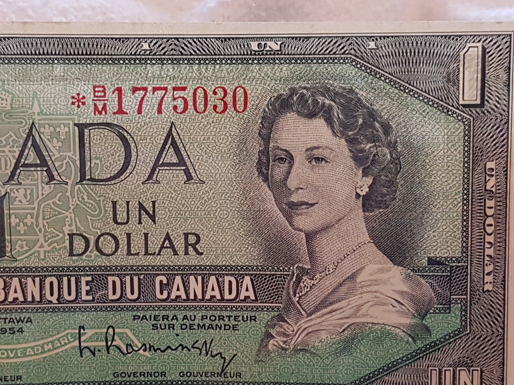 LOT OF 3-ONE DOLLAR BILLS (CANADA) *1954* (ONE IS REPLACEMENT)