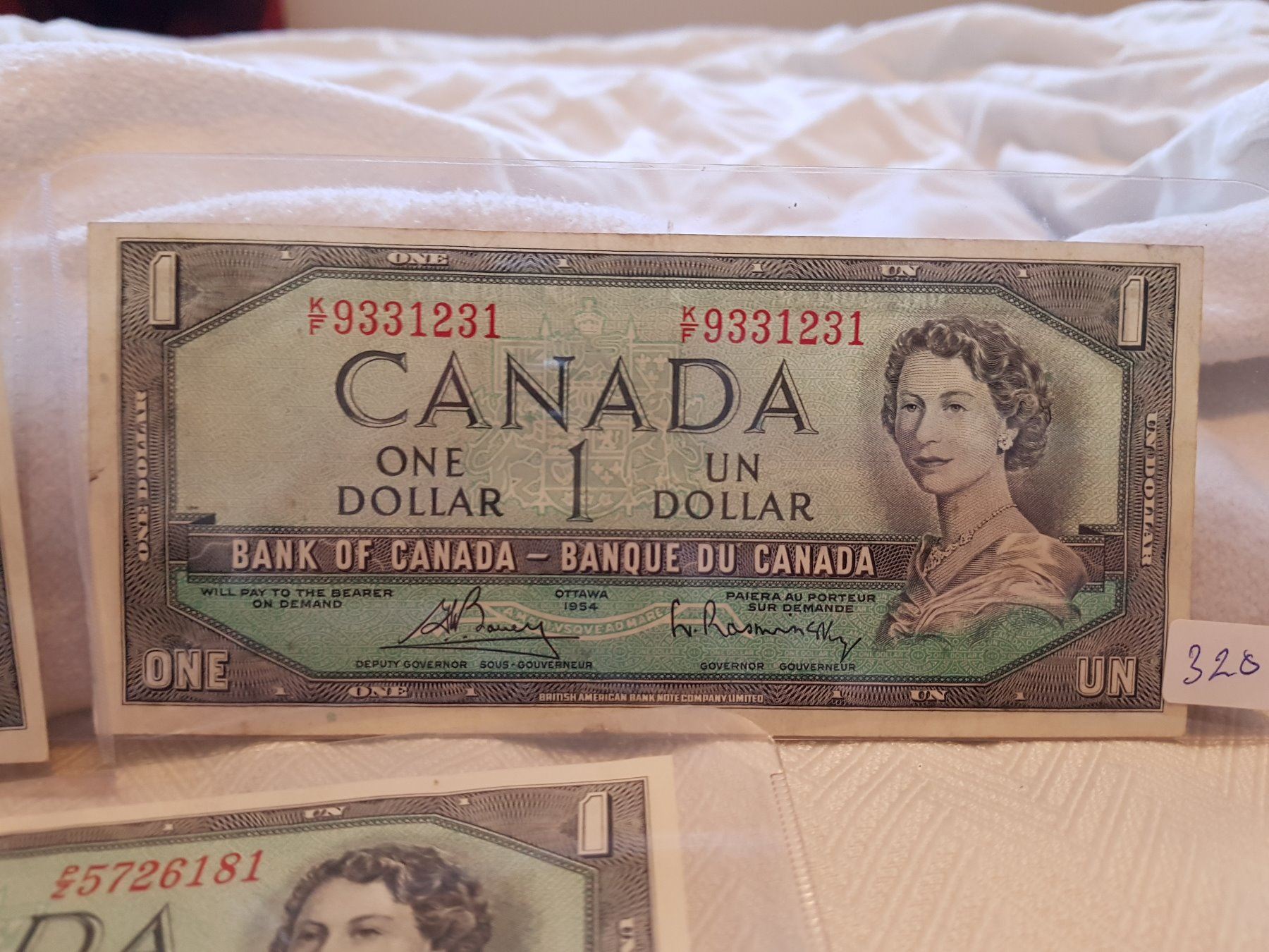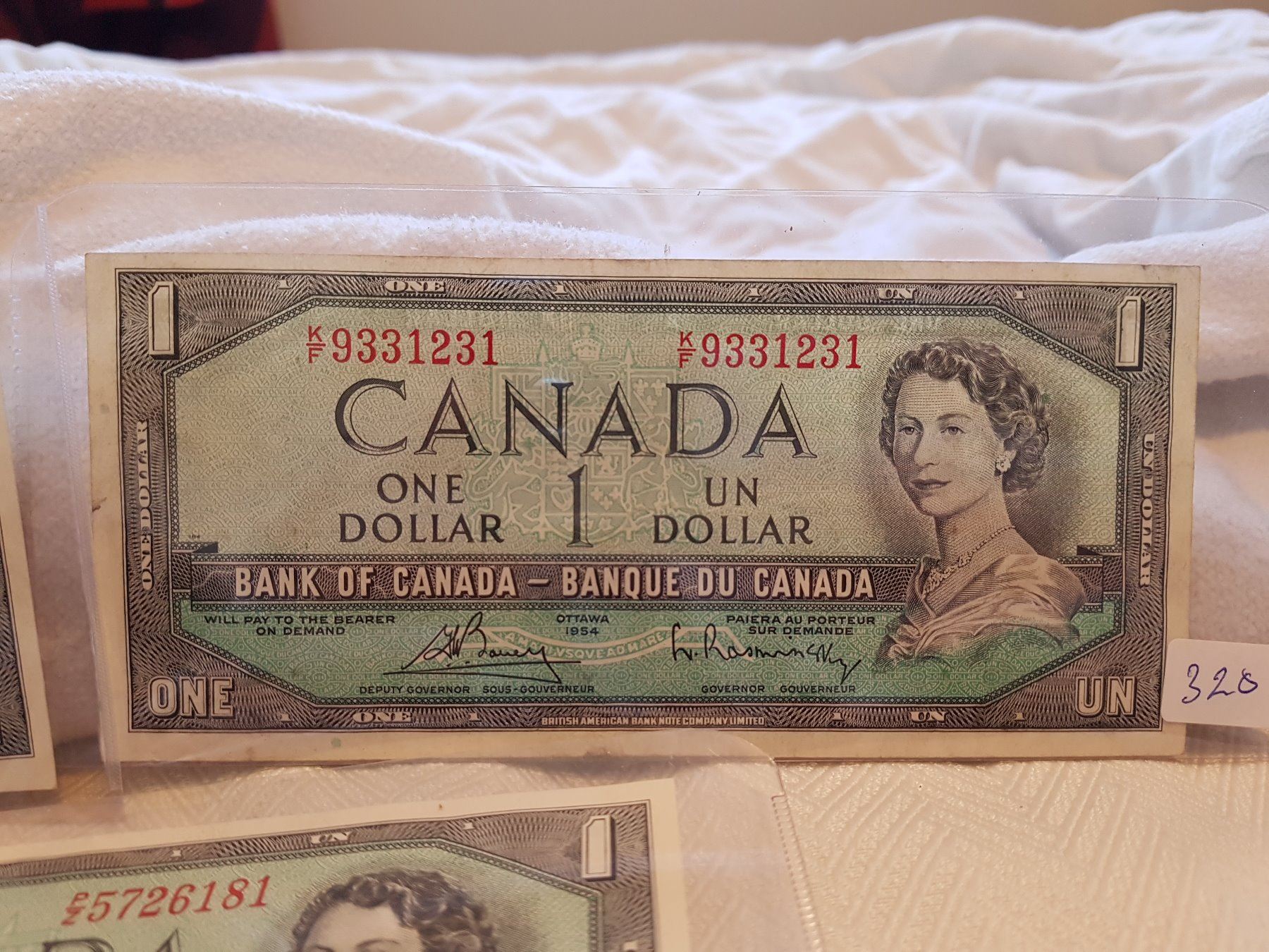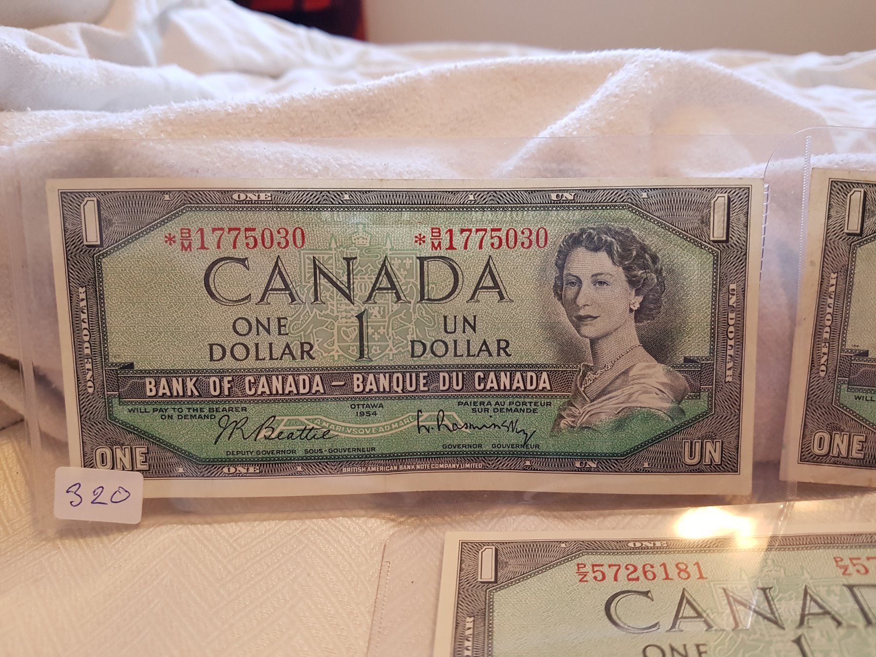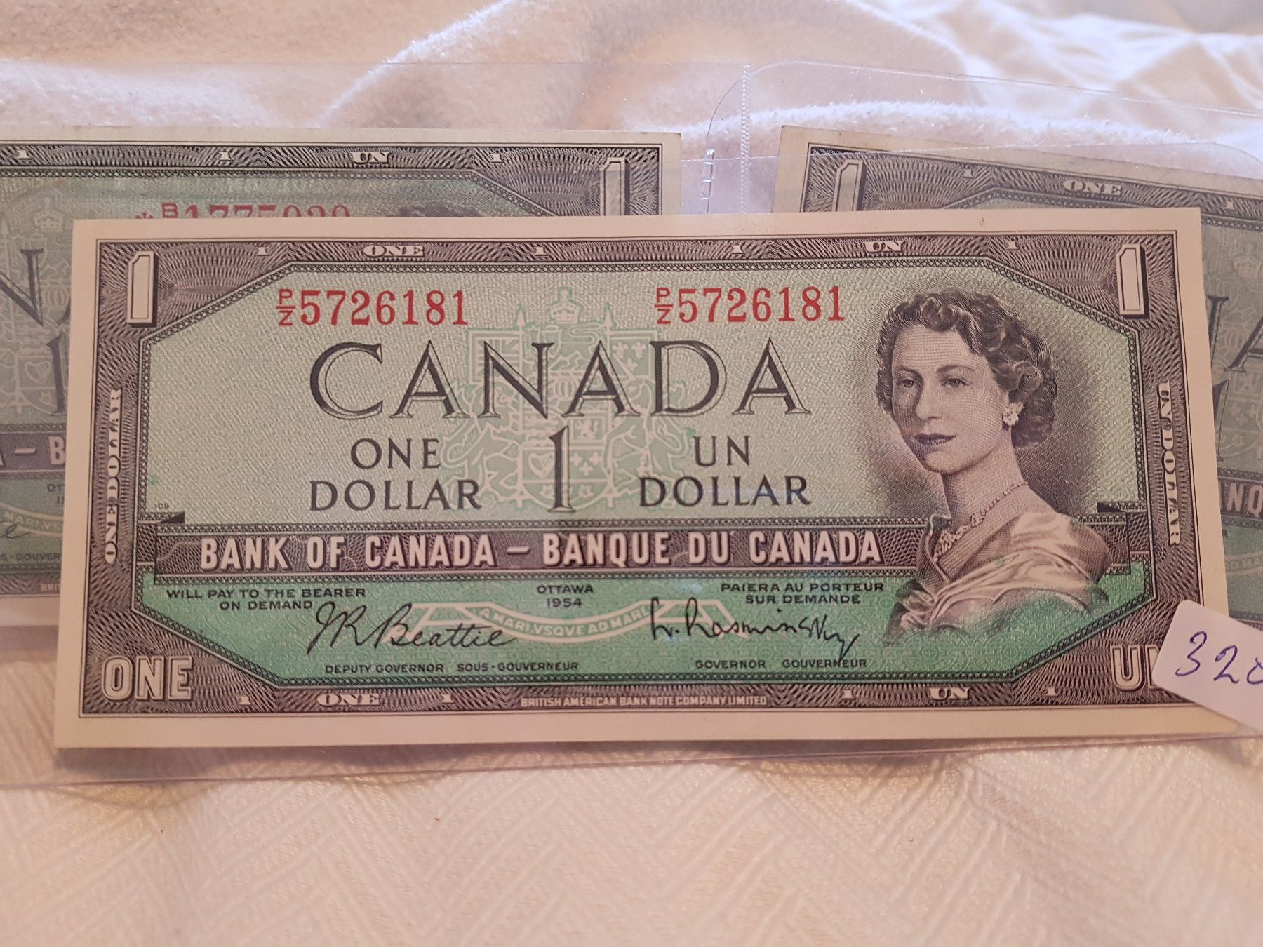 LOT OF 3-ONE DOLLAR BILLS (CANADA) *1954* (ONE IS REPLACEMENT)