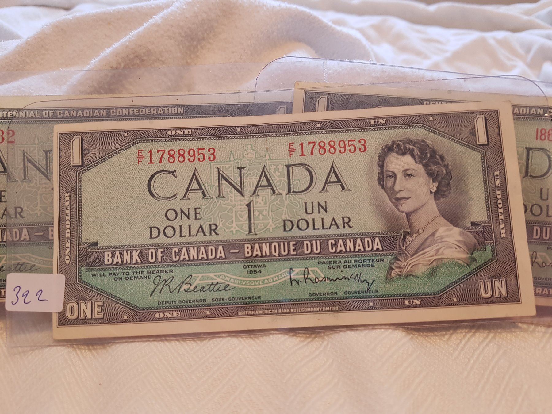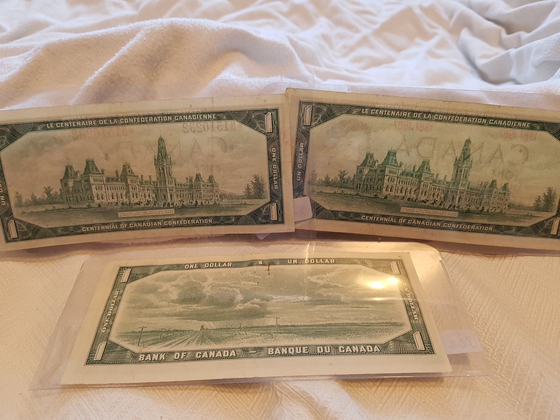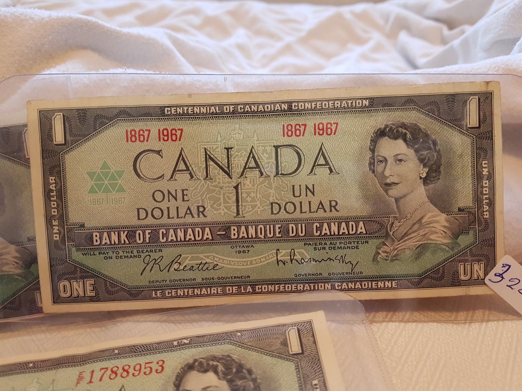 LOT OF 3-ONE DOLLAR BILLS (CANADA) *1967 REPLACEMENT-1967 NO SER #-1954*