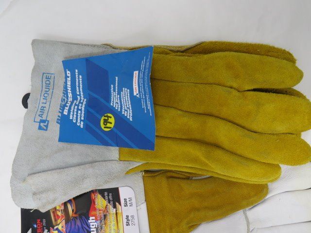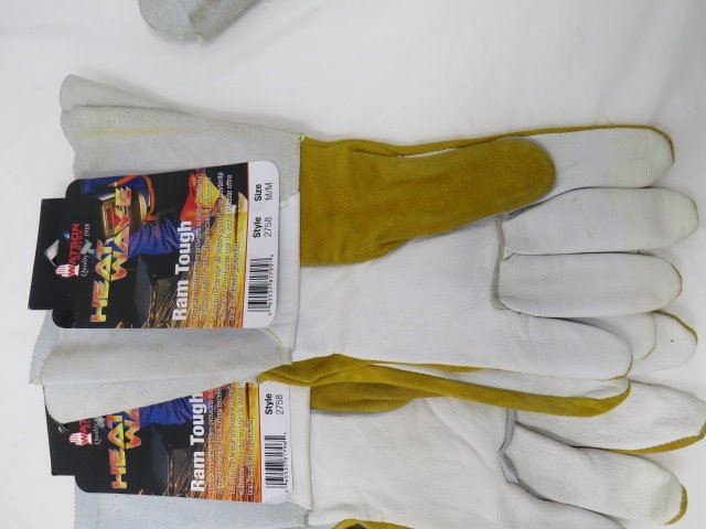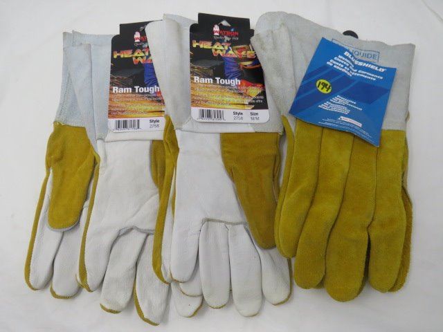 LOT OF 3 PAIRS OF GLOVES (WELDING AND OTHERS) *2-LARGE, 1-MEDIUM-LEATHER*