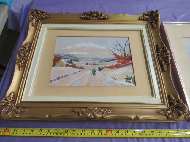 LOT OF 3 PICTURES (2 WINTER SCENES, 1 SUMMER) *ONE PICTURE BY M. LENOIR* (21" X 17", 20" X 16", 21" X 17")