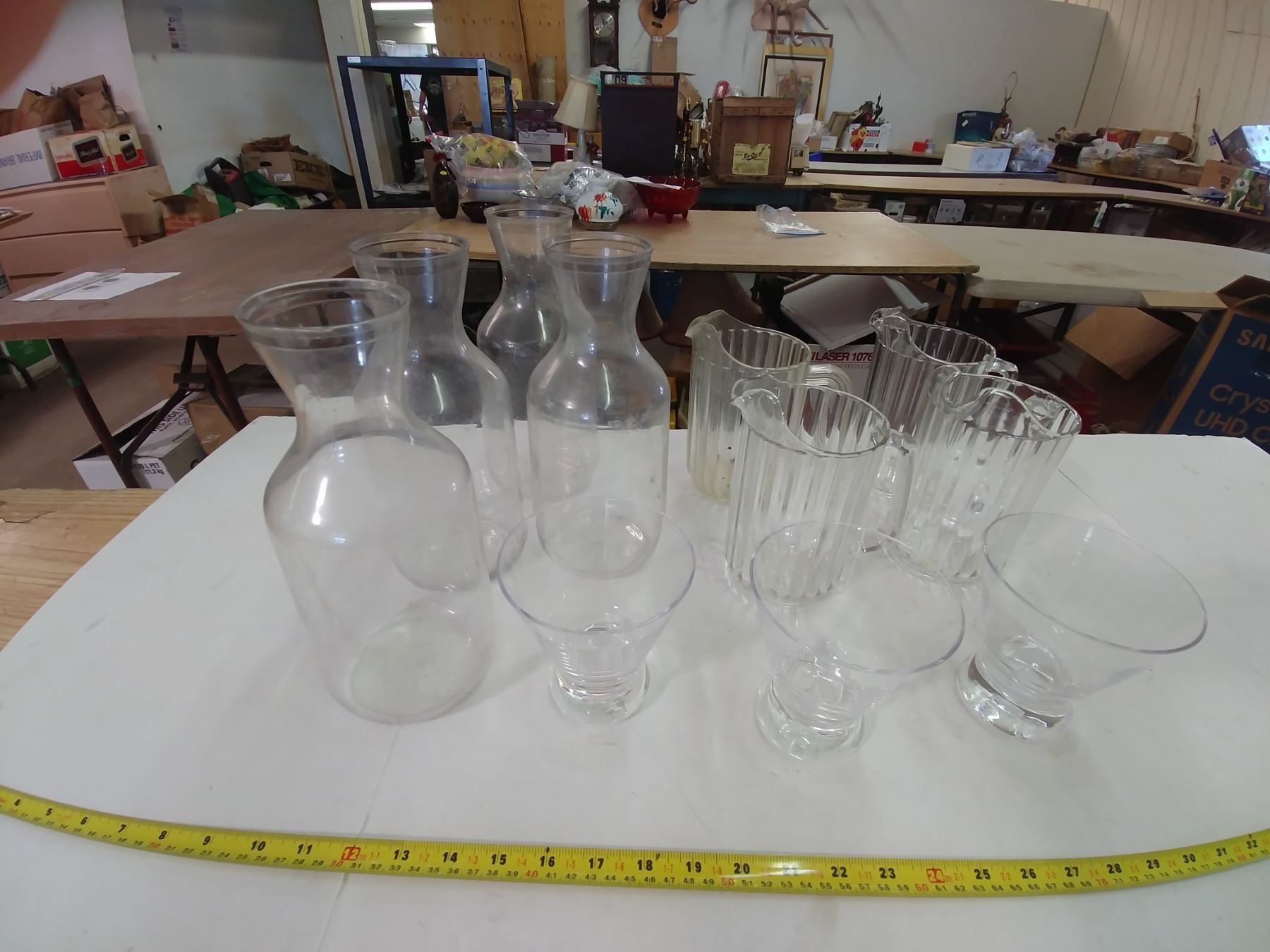 LOT OF 4 CAMBRO WATER CARAFES, 4 SMALL PITCHERS AND 3 MARTINI