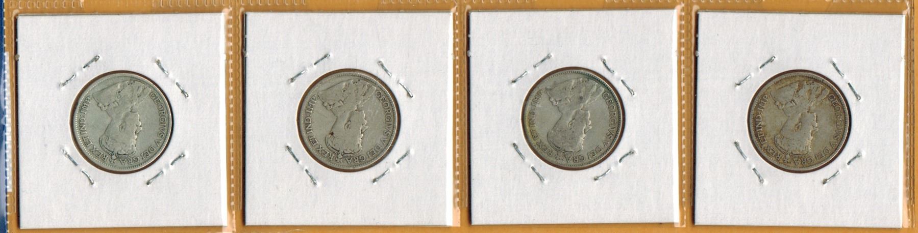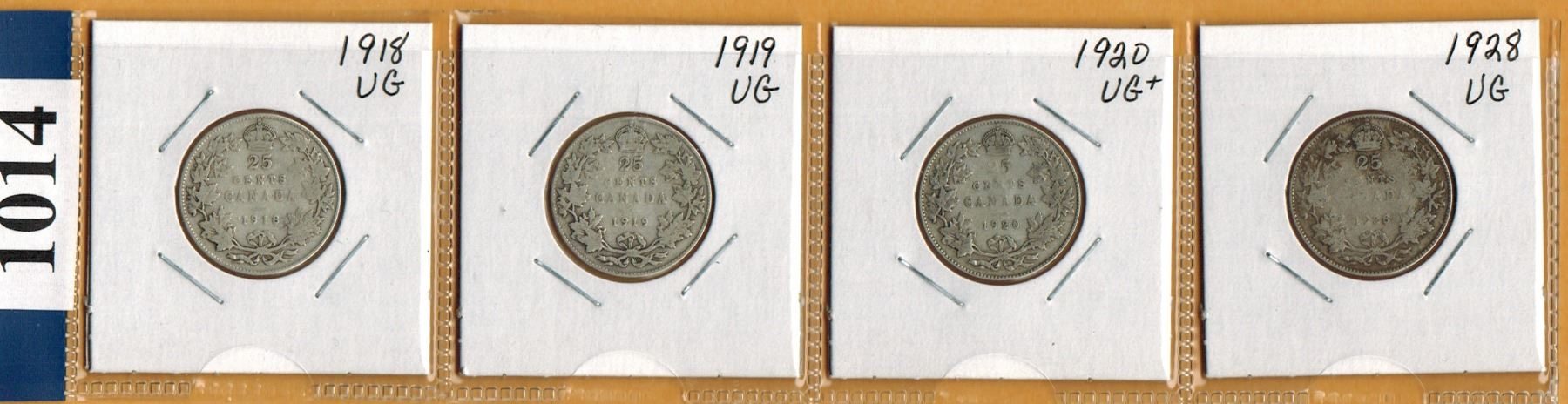 LOT OF 4 CANADIAN SILVER 25 CENT COINS (1918, 19, 20, 28)
