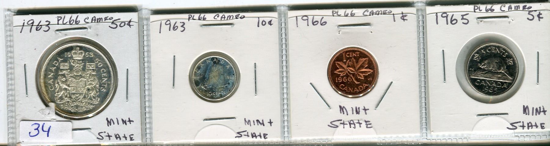 LOT OF 4 COINS (50 CENT PIECE 1963) *10 CENT PIECE 1963* ( 5 CENT PIECE 1965) *PENNY 1966*
