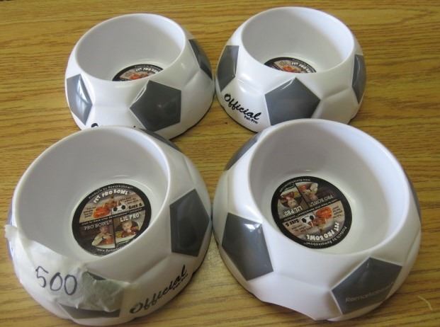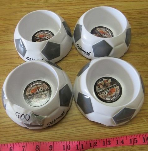 LOT OF 4 DOG DISHES (SOCCER BALL PATTERN) *SMALL* (NOS)