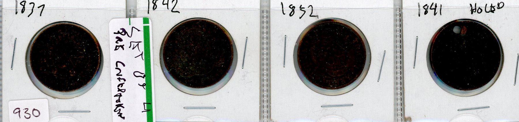 LOT OF 4-HALF PENNIES (CANADIAN) *1837, 1842, 1852 & 1841* (LARGE)