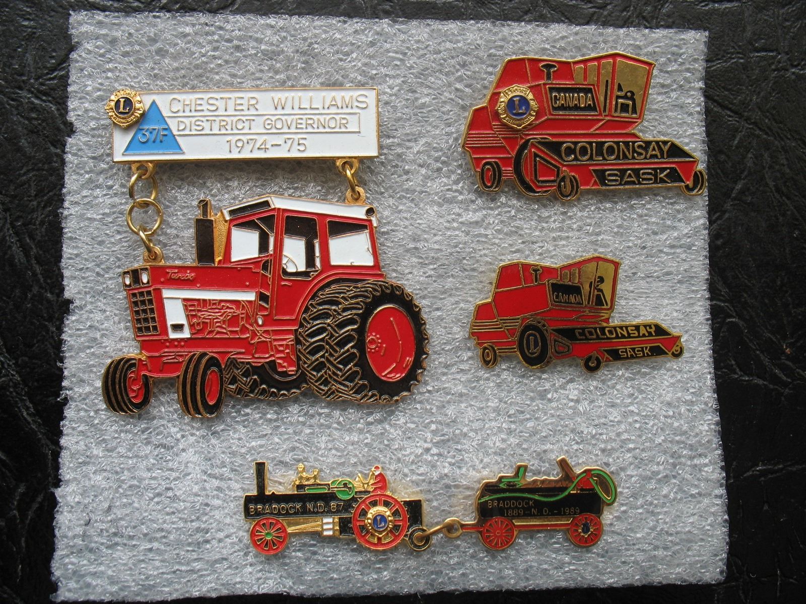 LOT OF 4 LIONS CLUB PINS- TRACTORS - COMBINES - SASKATCHEWAN and NORTH DAKOTA