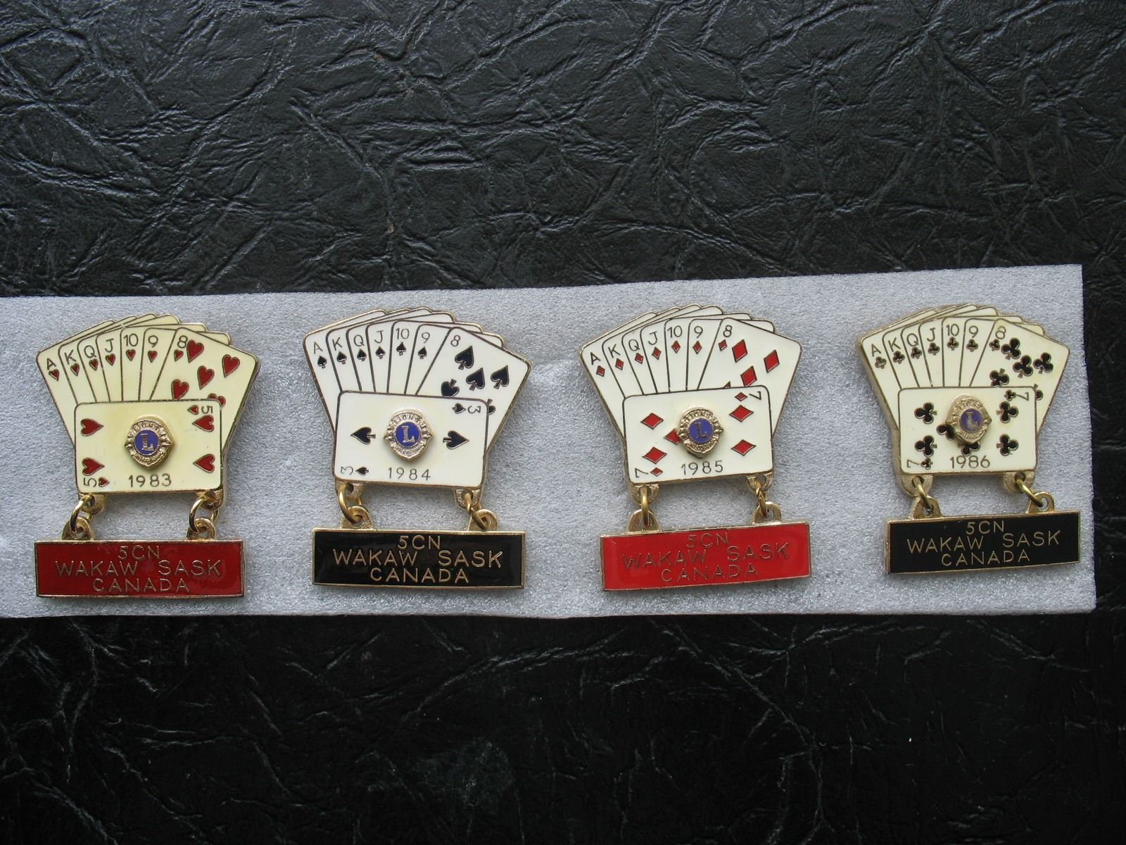 LOT OF 4 LIONS CLUB PINS - WAKAW, SASKATCHEWAN - VARIOUS YEARS - 4 SETS OF CARDS