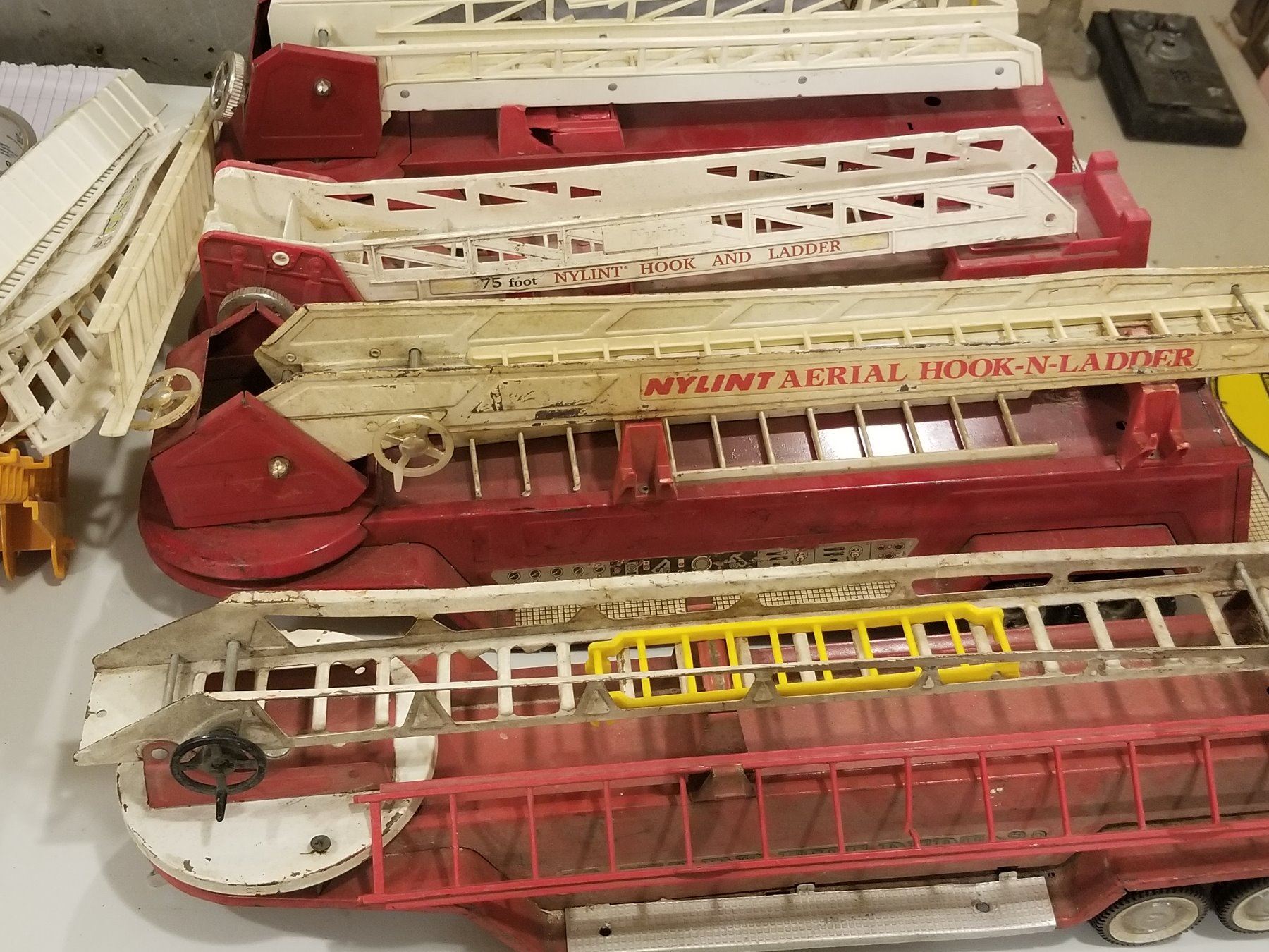 LOT OF 4 NYLINT FIRE TRUCKS (W/O CABS) *EXTRA PARTS*