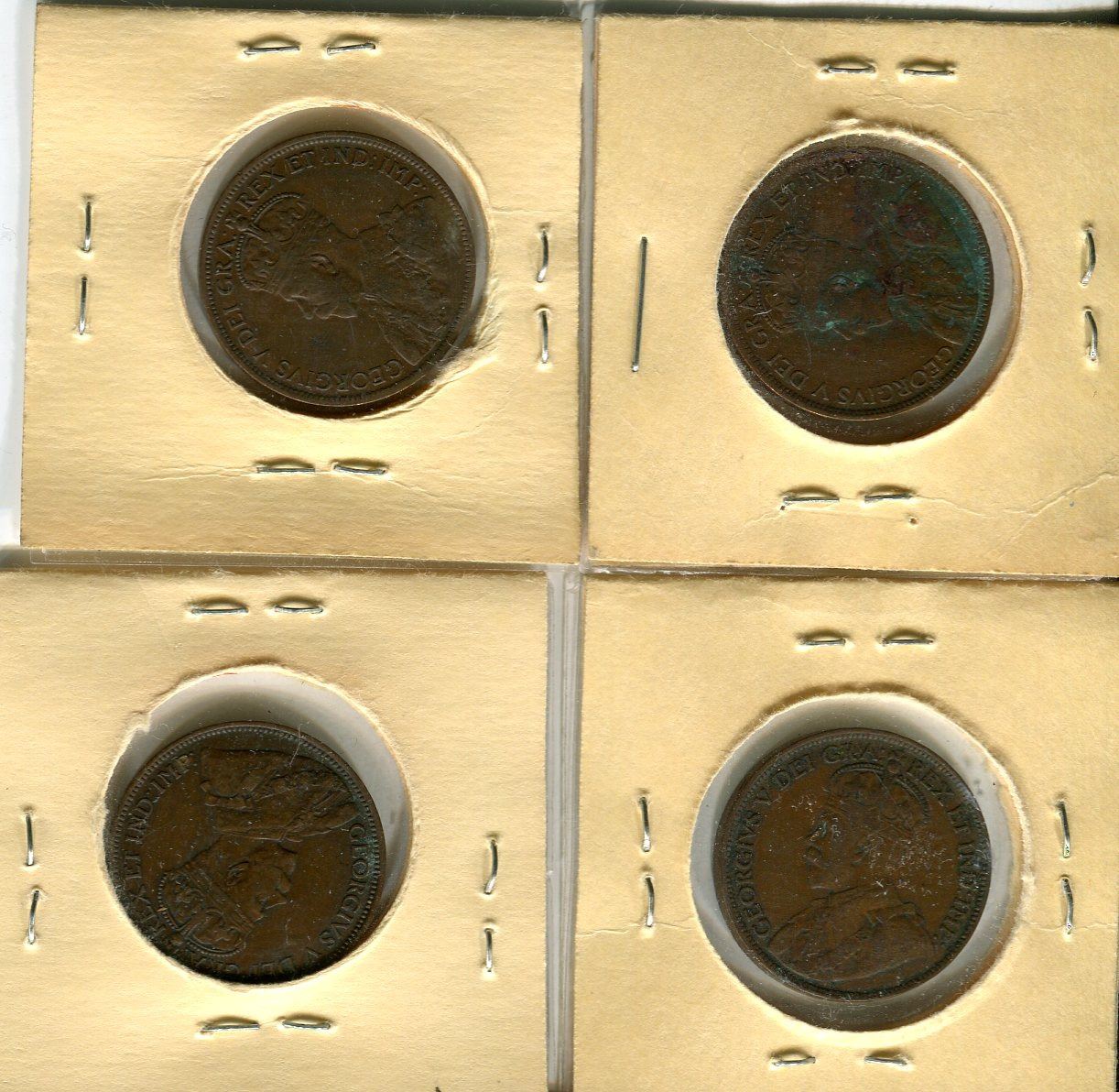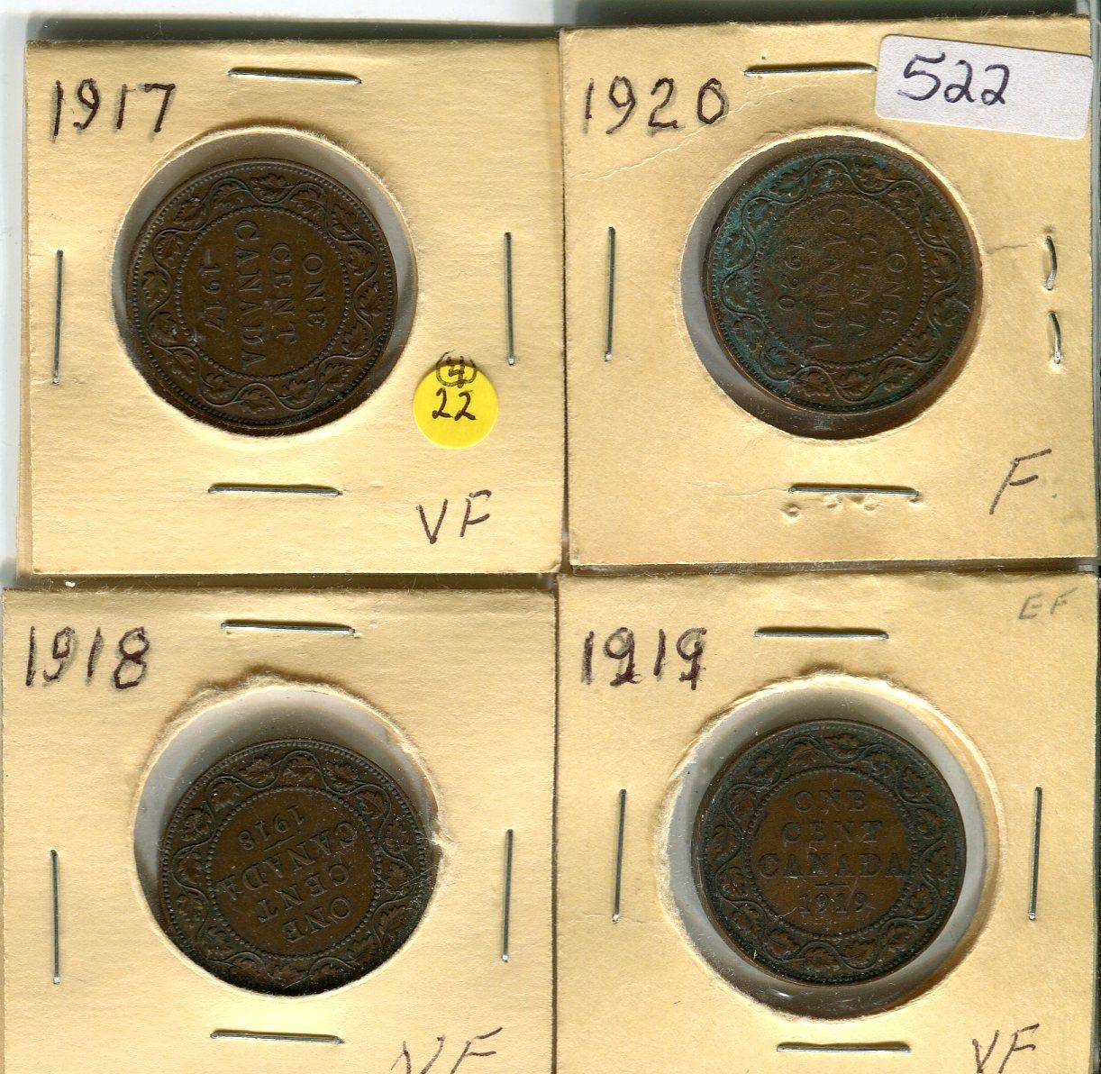 LOT OF 4 ONE CENT COINS (LARGE CANADIAN) *1917-18-19-20*