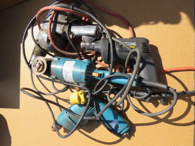 LOT OF 4 POWER TOOLS ( 1/2 INCH DRILL, 2-3/8 DRILLS, GRINDER)