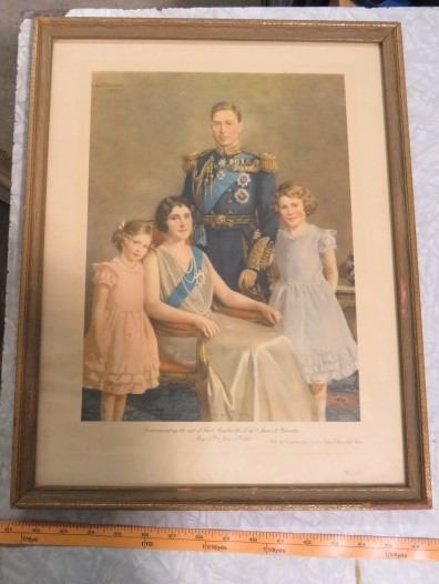 LOT OF 4 ROYAL FAMILY PICTURES (GLASS NEEDS TO BE REPLACED ON 1) *SOME WATER DAMAGE*