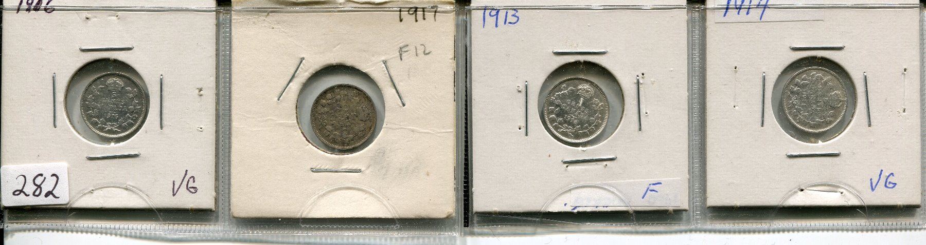 LOT OF 4 - *SILVER* CNDN 5 CENT PCS (1916. 1917, 1913, 1914)