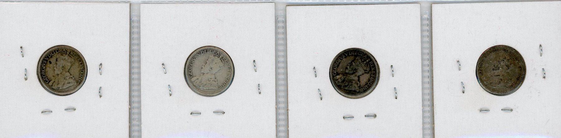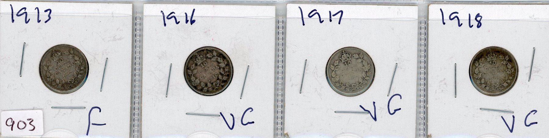 LOT OF 4-TEN CENT COINS (CANADIAN) *1913, 1916, 1917 & 1918* (SILVER)