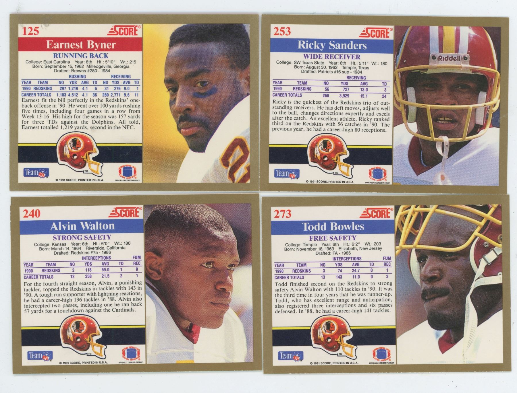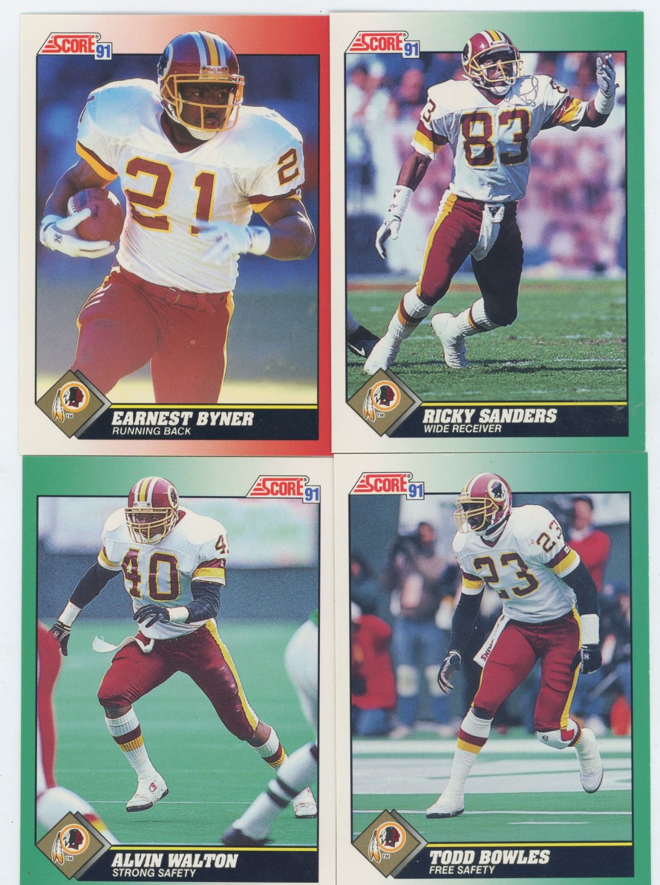 LOT OF 4 WASHINGTON REDSKINS, NFL FOOTBALL CARDS. INCLUDES RICKY SANDERS & EARNEST BYNER. 1991 SCORE. ALL GEM UNC