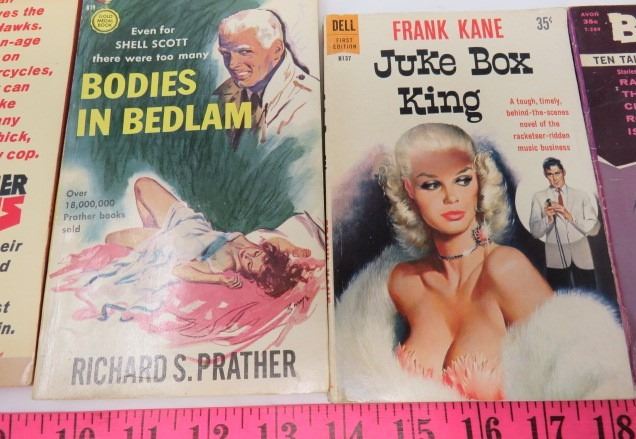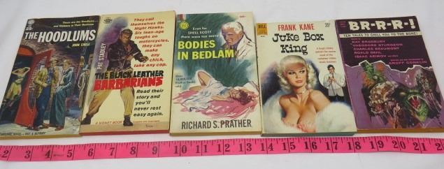 LOT OF 5 BOOKS (PAPERBACK NOVELS) *THE HOODLUMS, BLACK LEATHER BARBARIANS, JUKE BOX KING, BODIES IN BEDLAM, BRRR*