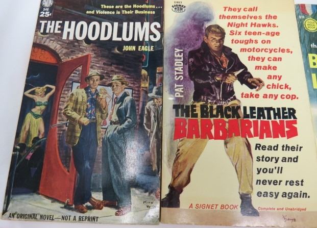 LOT OF 5 BOOKS (PAPERBACK NOVELS) *THE HOODLUMS, BLACK LEATHER BARBARIANS, JUKE BOX KING, BODIES IN