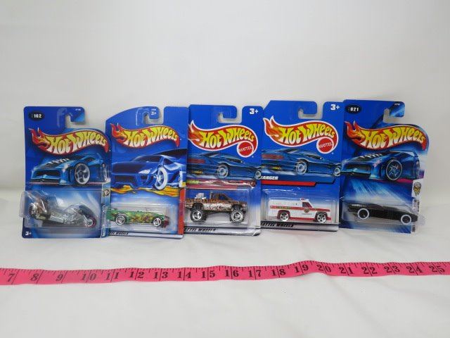 LOT OF 5 HOTWHEEL TOYS (RANGER, MINI TRUCK, FRIGHT BIKE, ETC…)