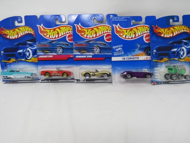 LOT OF 5 HOTWHEEL VEHICLES (EXPRESS LANE, 58 CORVETTE, FERRARI 250, JAGUAR XK8, METRORAIL)
