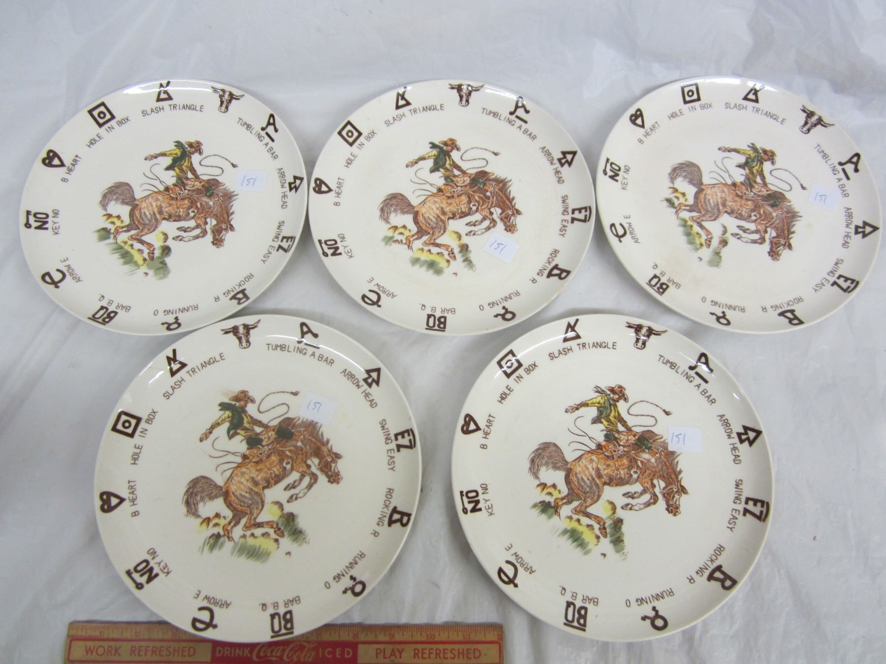 LOT OF 5 KIDS 1960'S COWBOY DINNER PLATES
