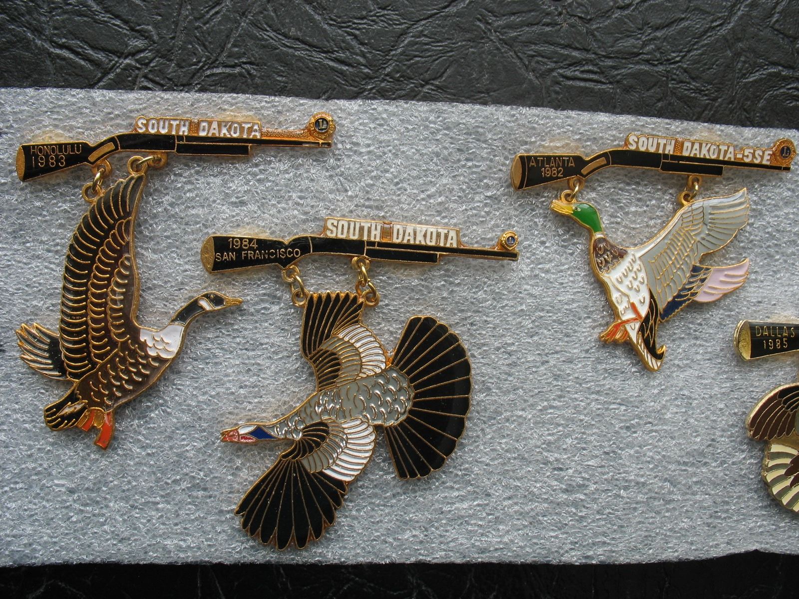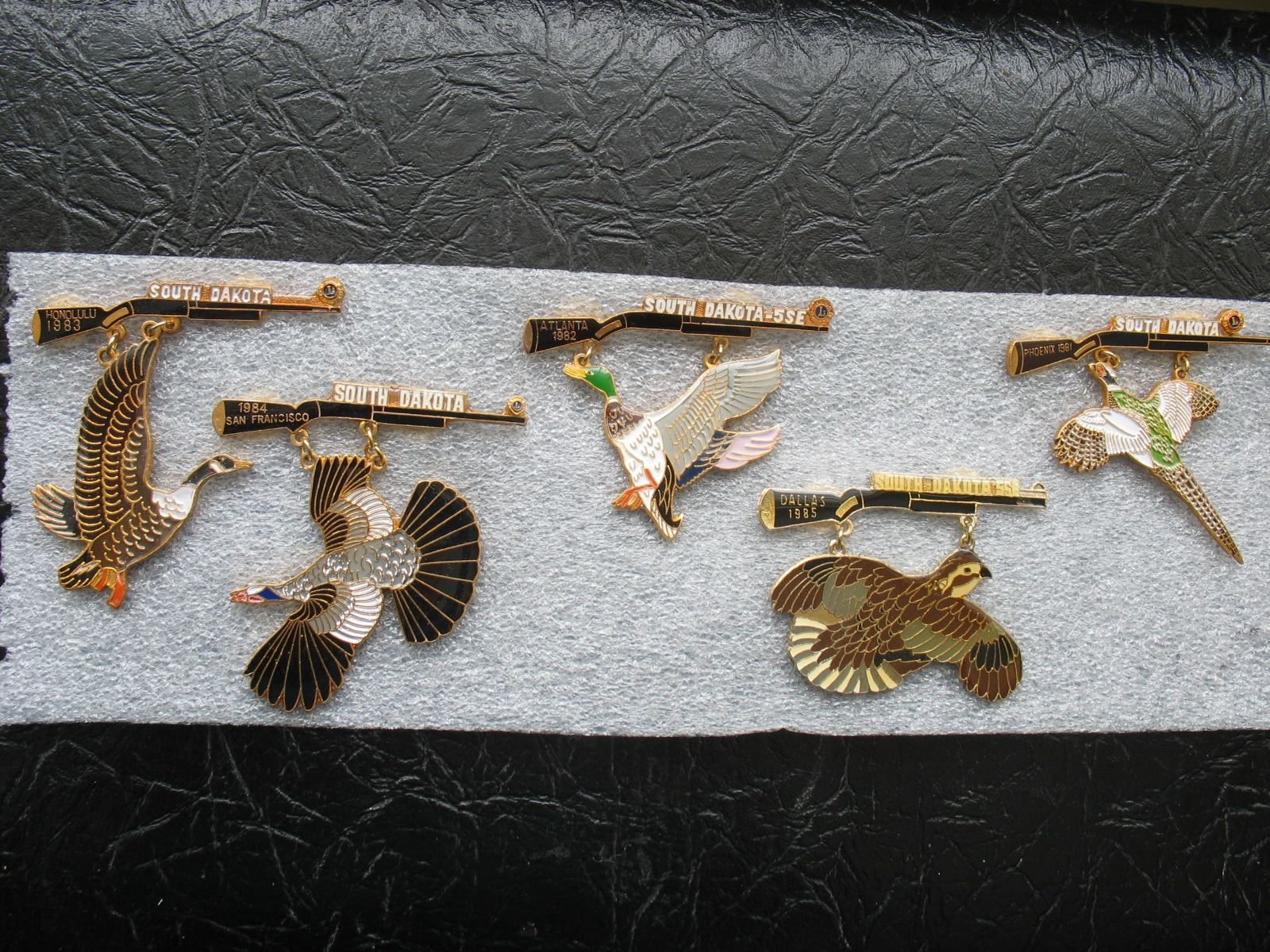 LOT OF 5 LIONS CLUB PINS - SOUTH DAKOTA - VARIOUS CONVENTIONS - GUN & GAME HUNTING