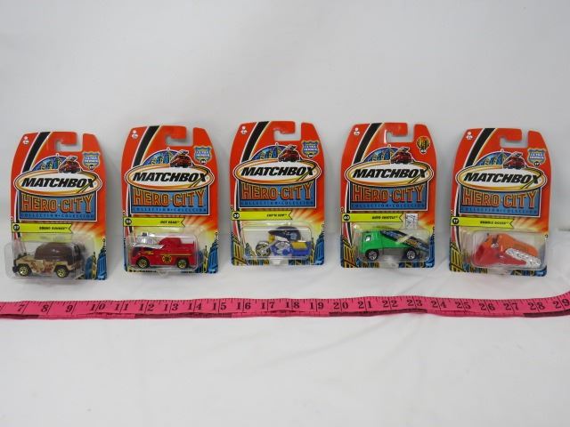 LOT OF 5 MATCHBOX CARS (HERO CITY) *RUMBLE DOZER, AUTO SHUTTLE, CAP N' COP, SQUAD RUNNER & HOT HEAD*