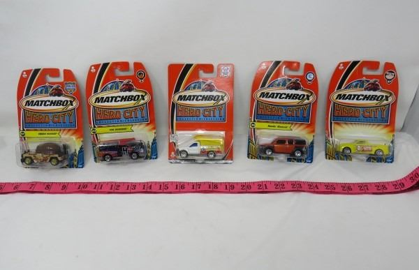 LOT OF 5 MATCHBOX CARS (HERO CITY) *SQUAD RUNNER, FIRE QUENCHER, HONDA ELEMENT, ETC*