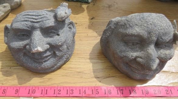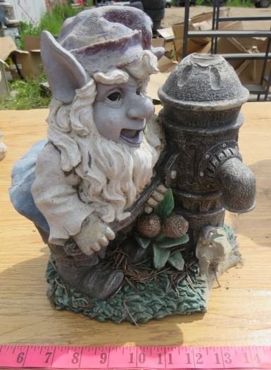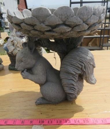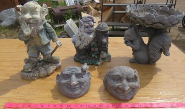 LOT OF 5 PIECES OF GARDEN DÉCOR (2 X GNOMES) *2 X FACE PLANTERS* (SQUIRREL BIRDBATH)