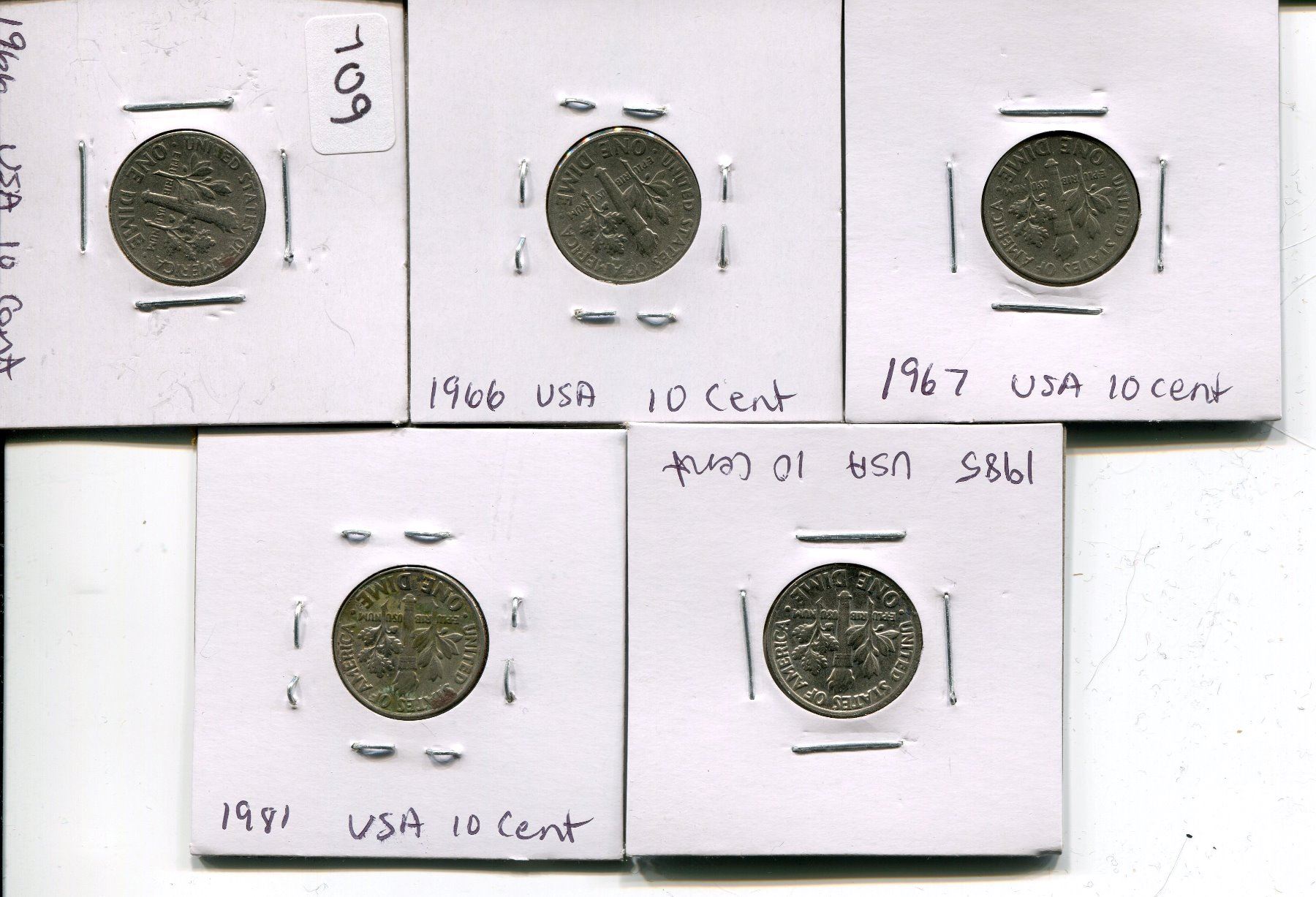 LOT OF 5 U.S.A. TEN CENT PCS *1966 (2), 67, 81, 85*