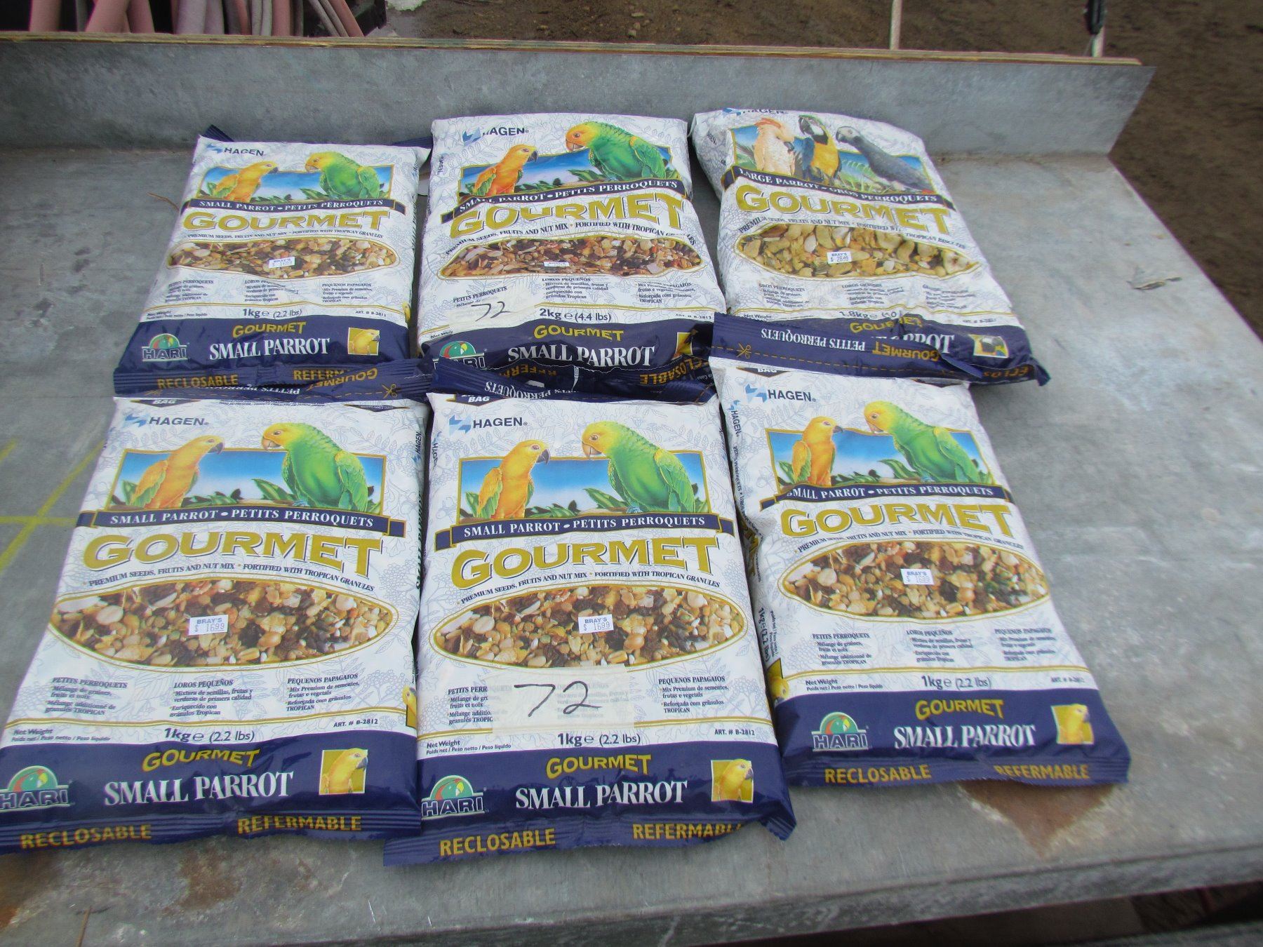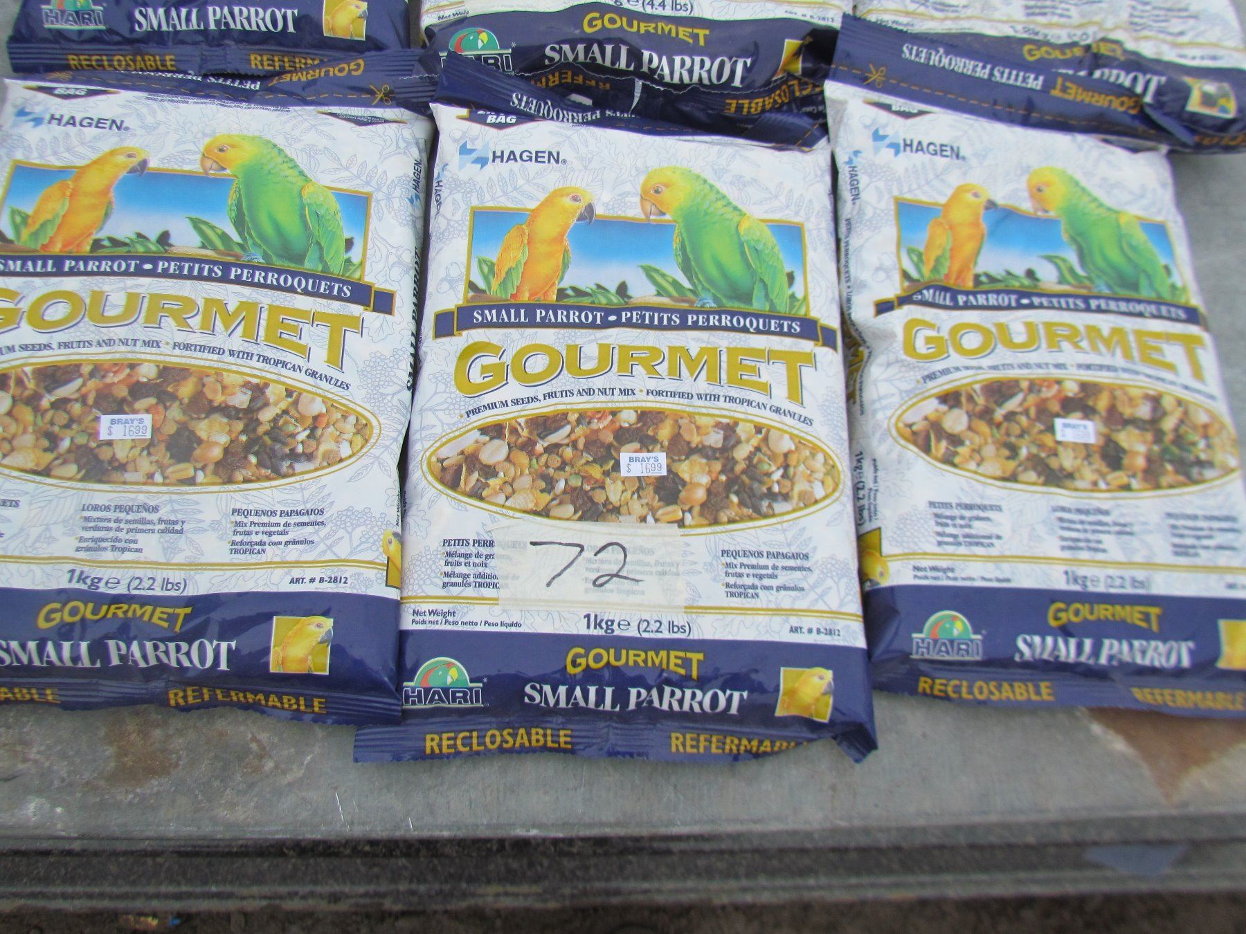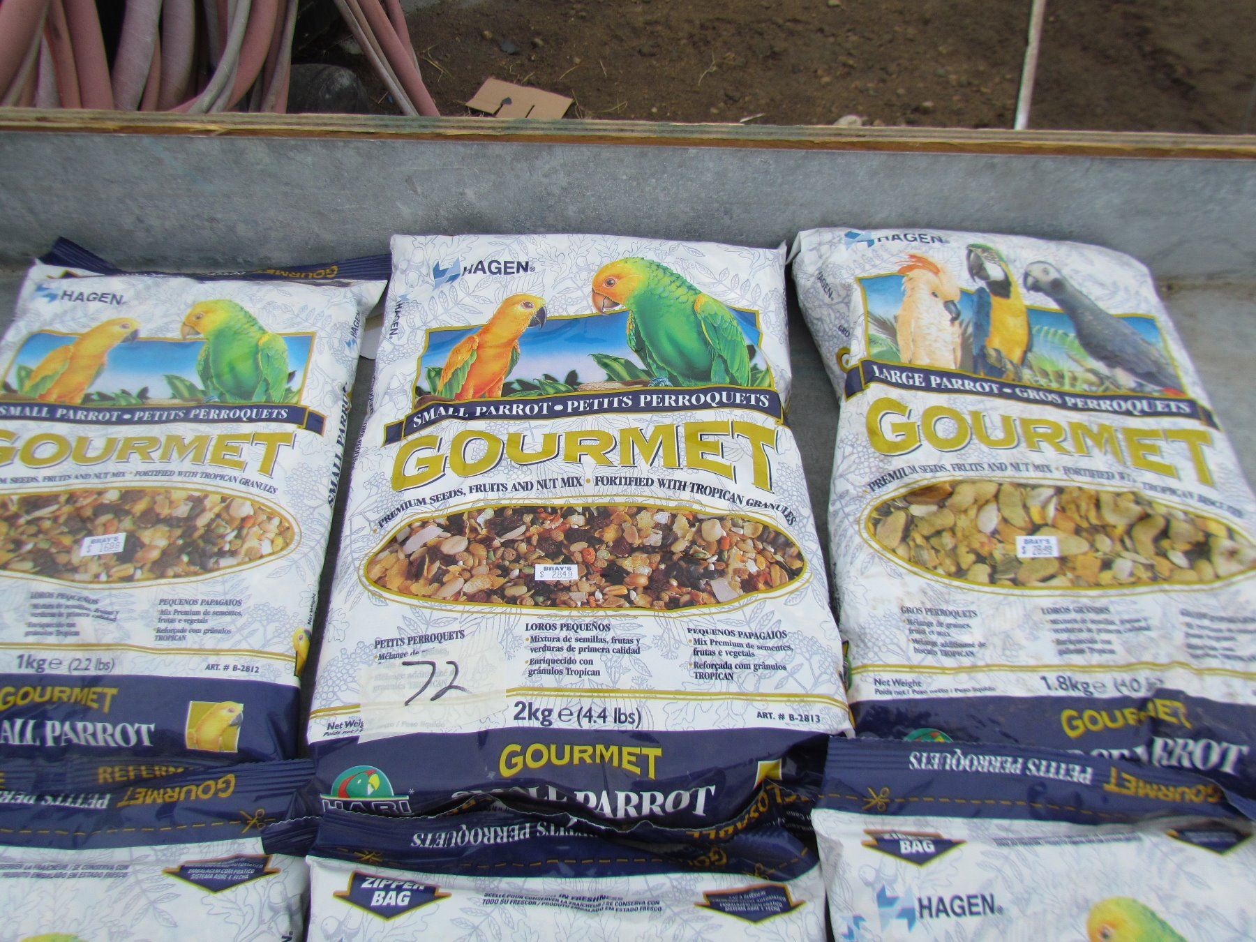 LOT OF 6 BAGS OF LARGE AND SMALL PARROT GOURMENT FOOD *NOS*