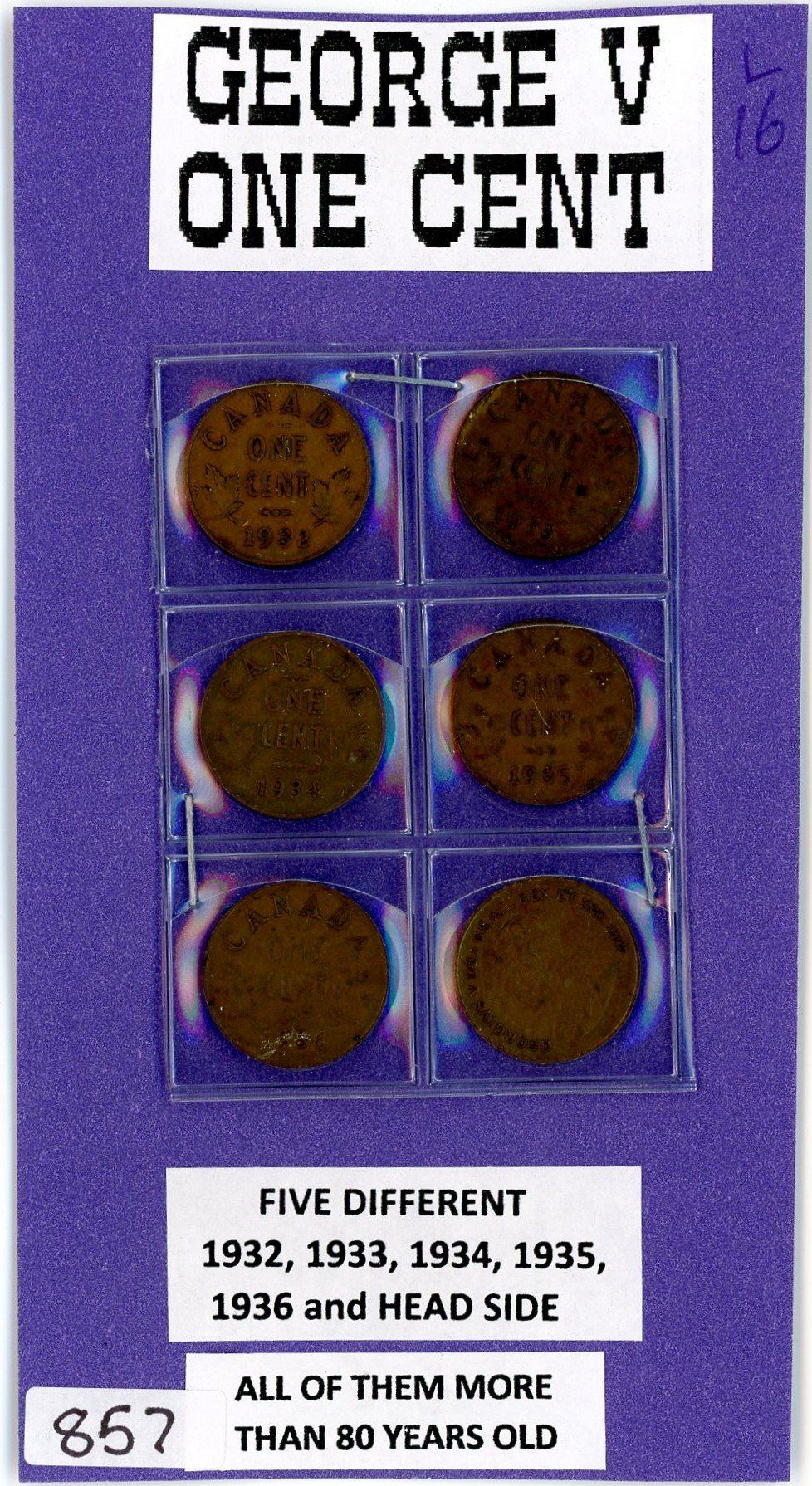 LOT OF 6- ONE CENT COINS (CANADA) *1932 TO 1936-AND ONE EXTRA 1936 TO SHOW THE HEAD SIDE*