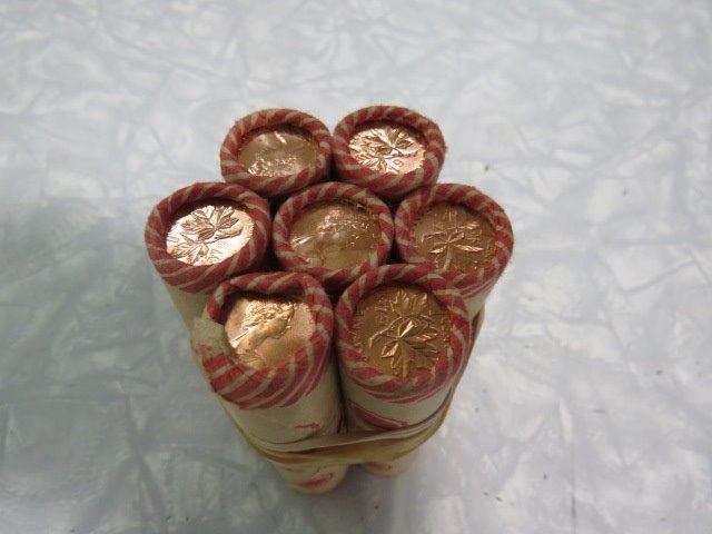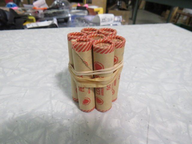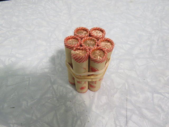 LOT OF 7 BANK ROLLED PENNIES (ORIGINALLY PACKAGED BY BANK AND NEVER CIRCULATED)