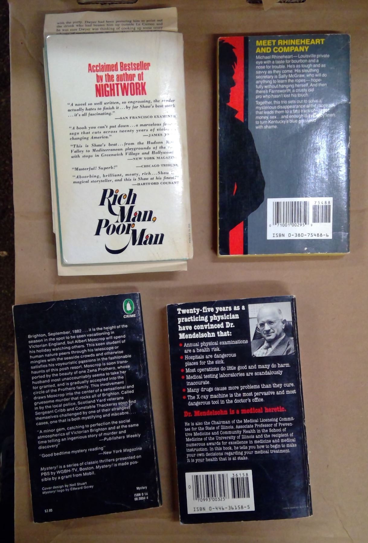 Rich Man Poor Man, The Last Private Eye, Mad Hatter's Holiday, Confessions of a Medical Heretic, The Forsyte Saga: To Let, Rebecca, and The Key to Rebecca