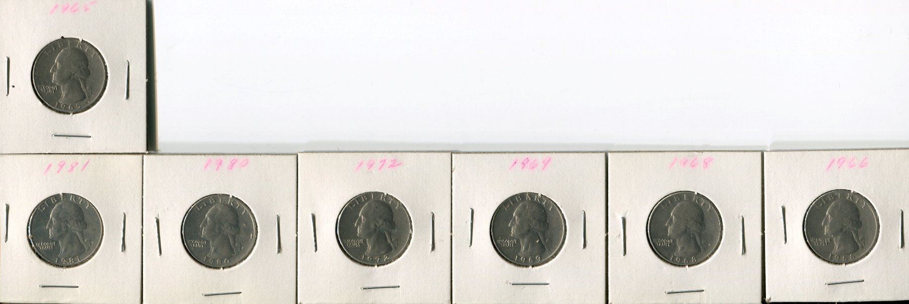 LOT OF 7-TWENTY FIVE CENT COINS (USA) *1965, 66, 68, 69, 72, 80, 81*