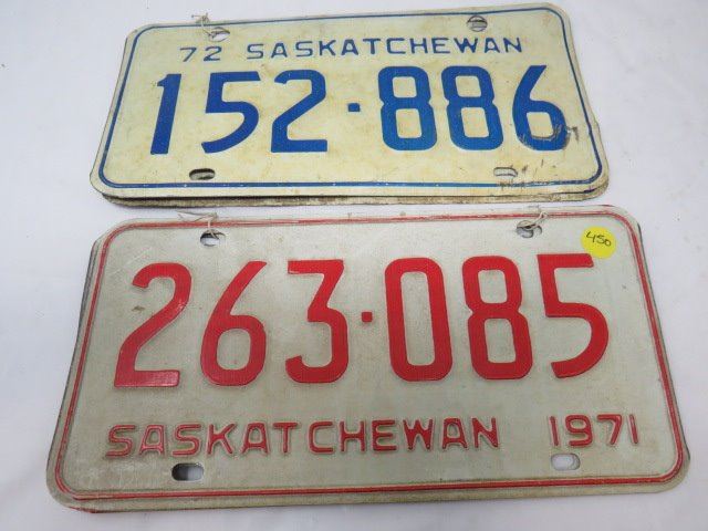 LOT OF 8 LICENSE PLATES (1971, 72, 73, 74, 75-2 OF EACH YEAR) *SASK*