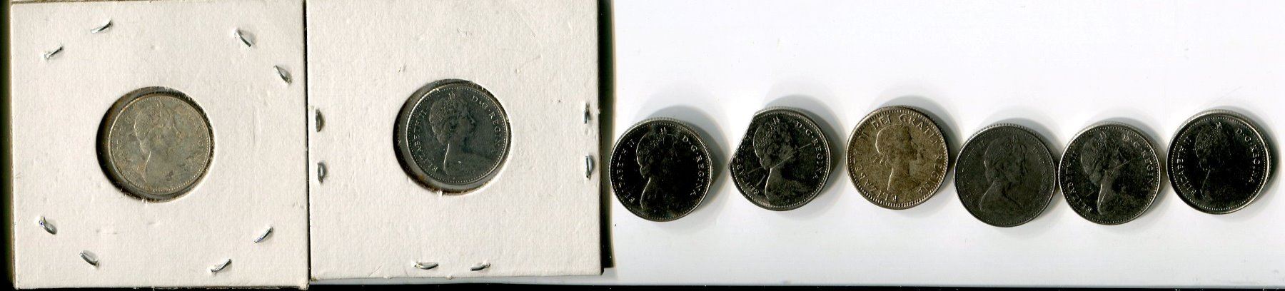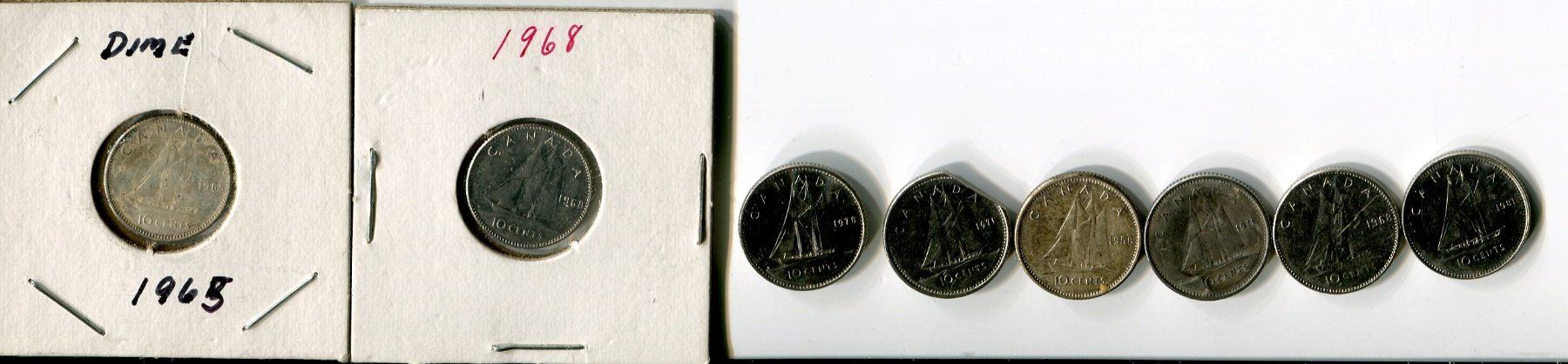 LOT OF 8- TEN CENT COINS (CANADA) *1956, 65, 68, 68, 71, 71, 78, 81*
