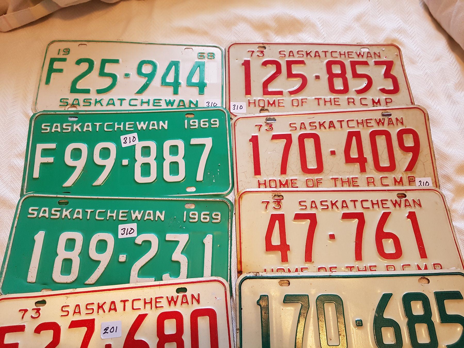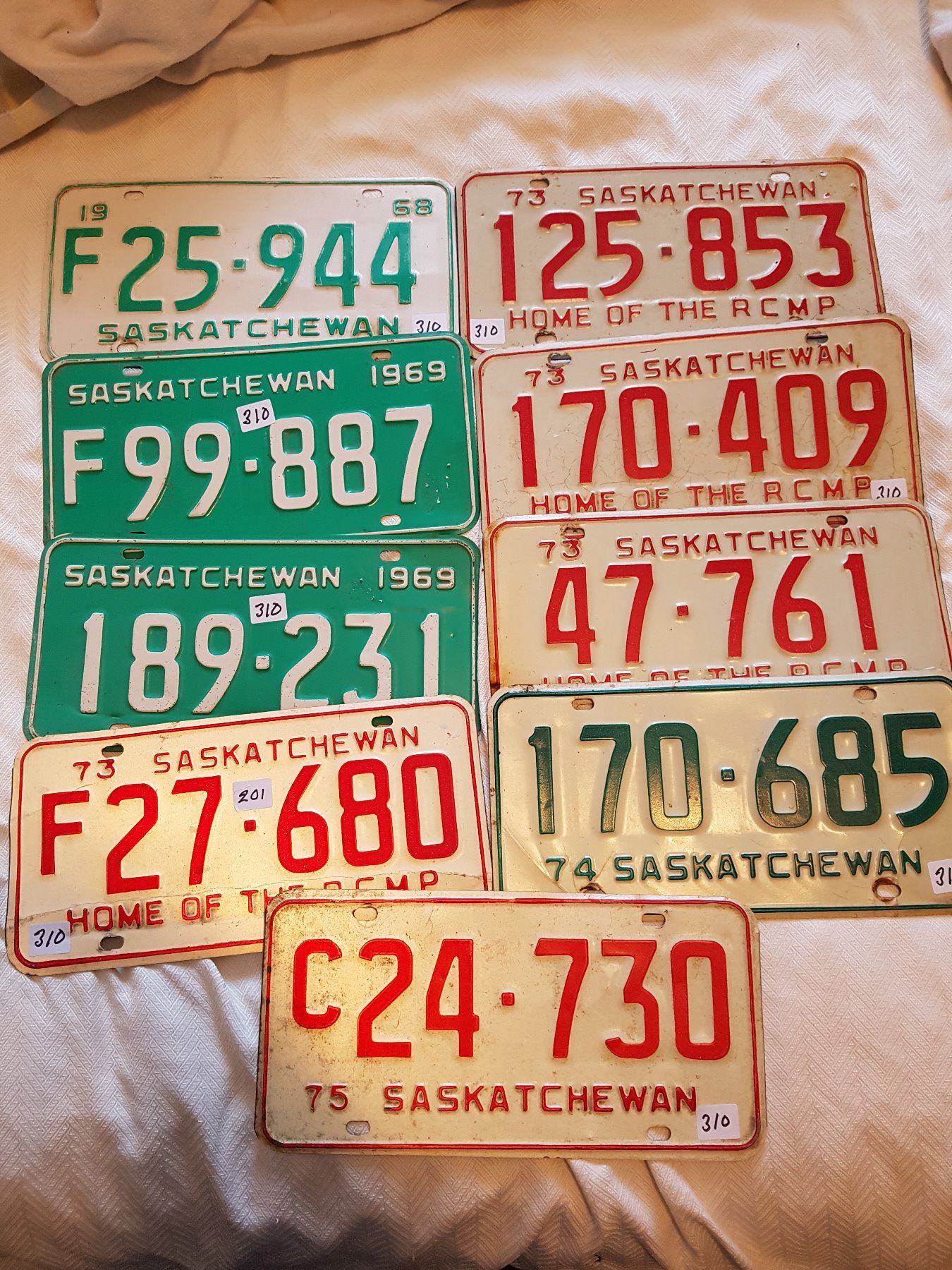 LOT OF 9 LICENSE PLATES (SASK) *1968-1975-4 ARE 1973 RCMP*