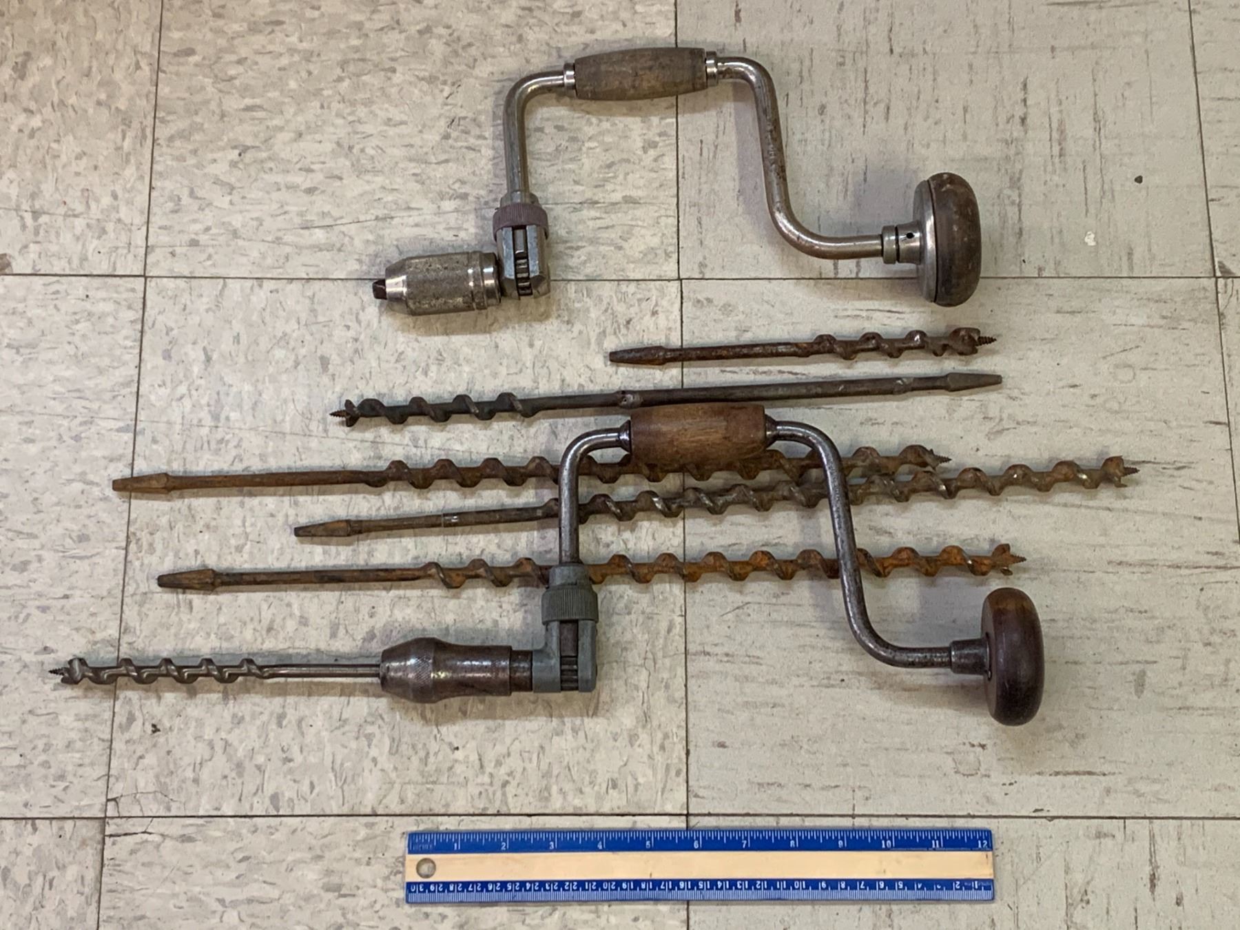 LOT OF ANTIQUE DRILLS AND BITS