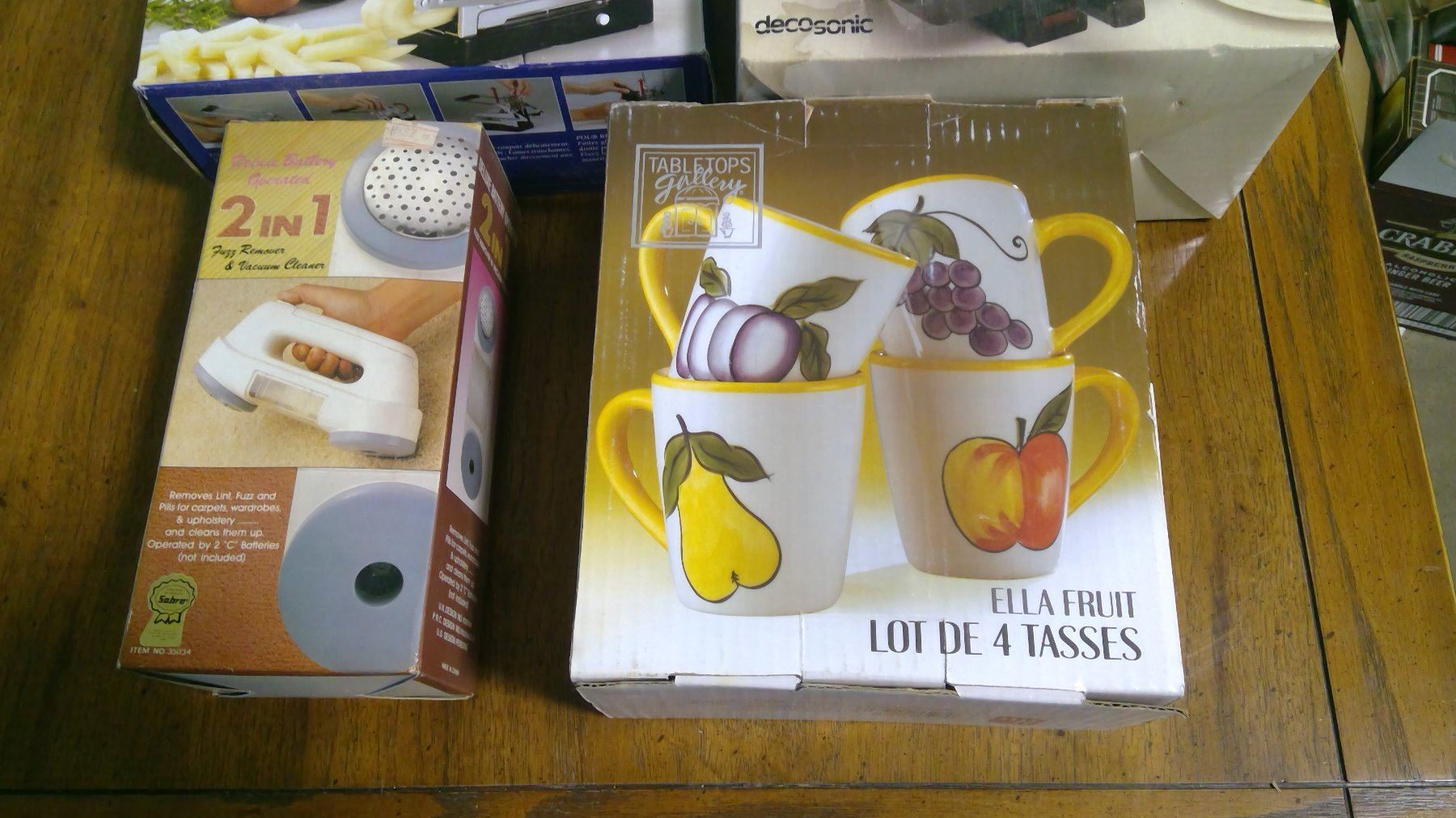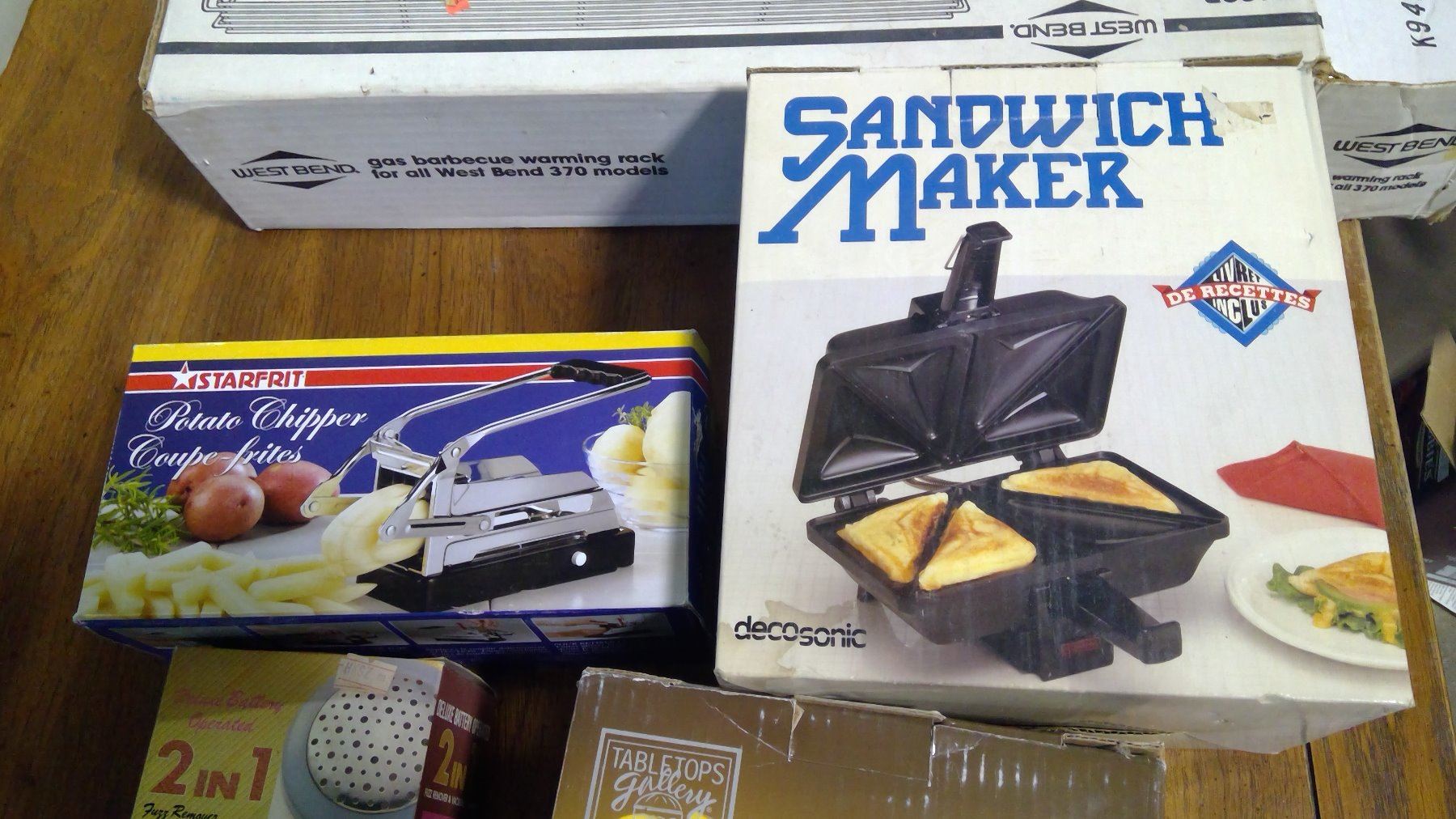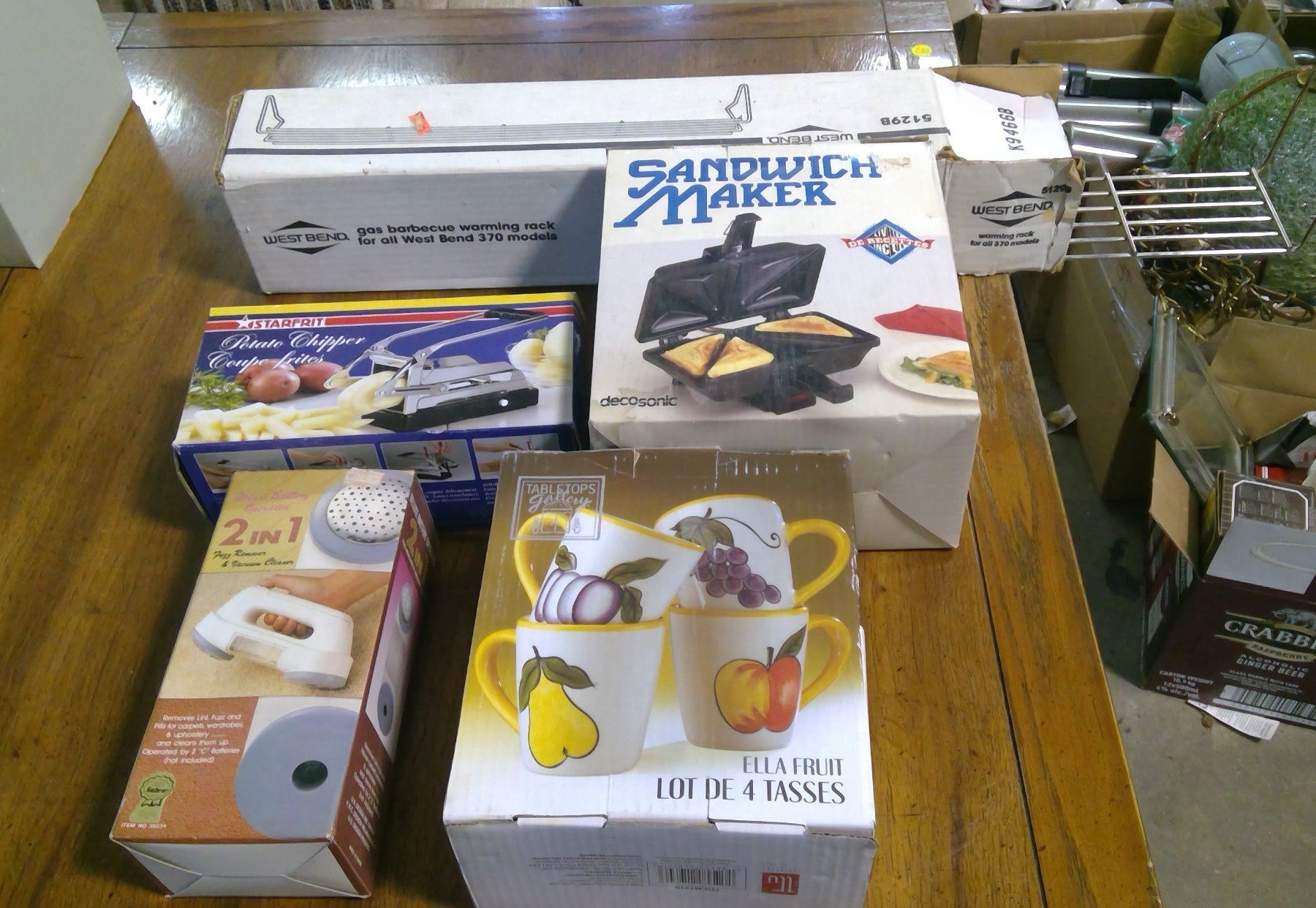 LOT OF ASSORTED ITEMS - FRUIT CUPS, SANDWICH MAKER, POTATO CHIPPER, ETC.