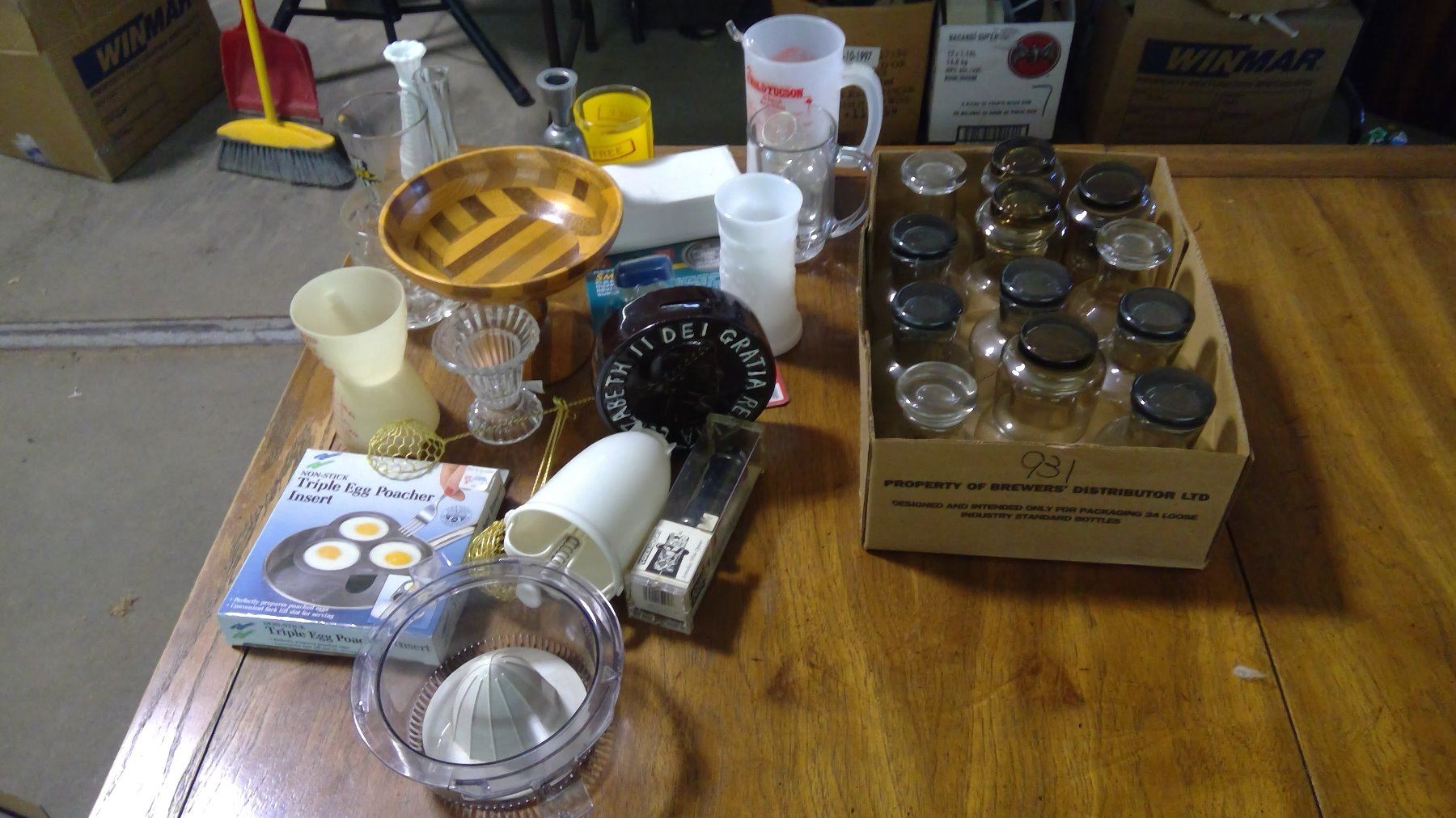 LOT OF ASSORTED KITCHENWARE - GLASSES, JUICER, EGG POACHER, ETC.