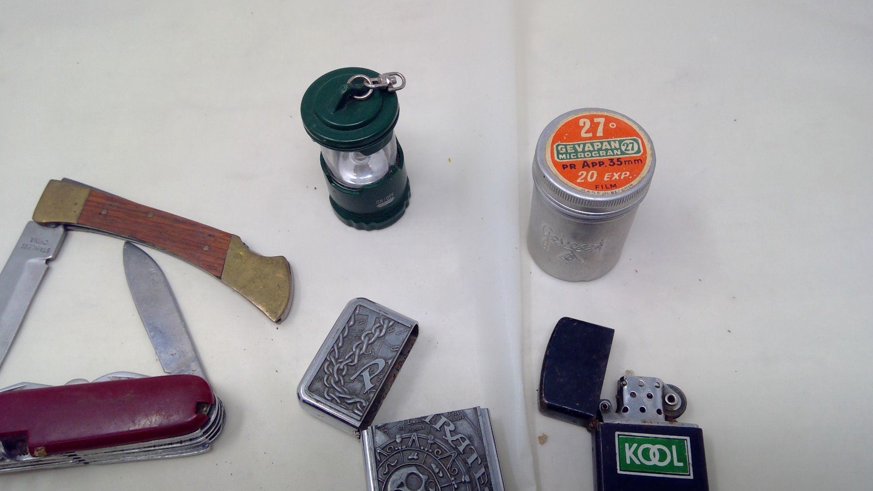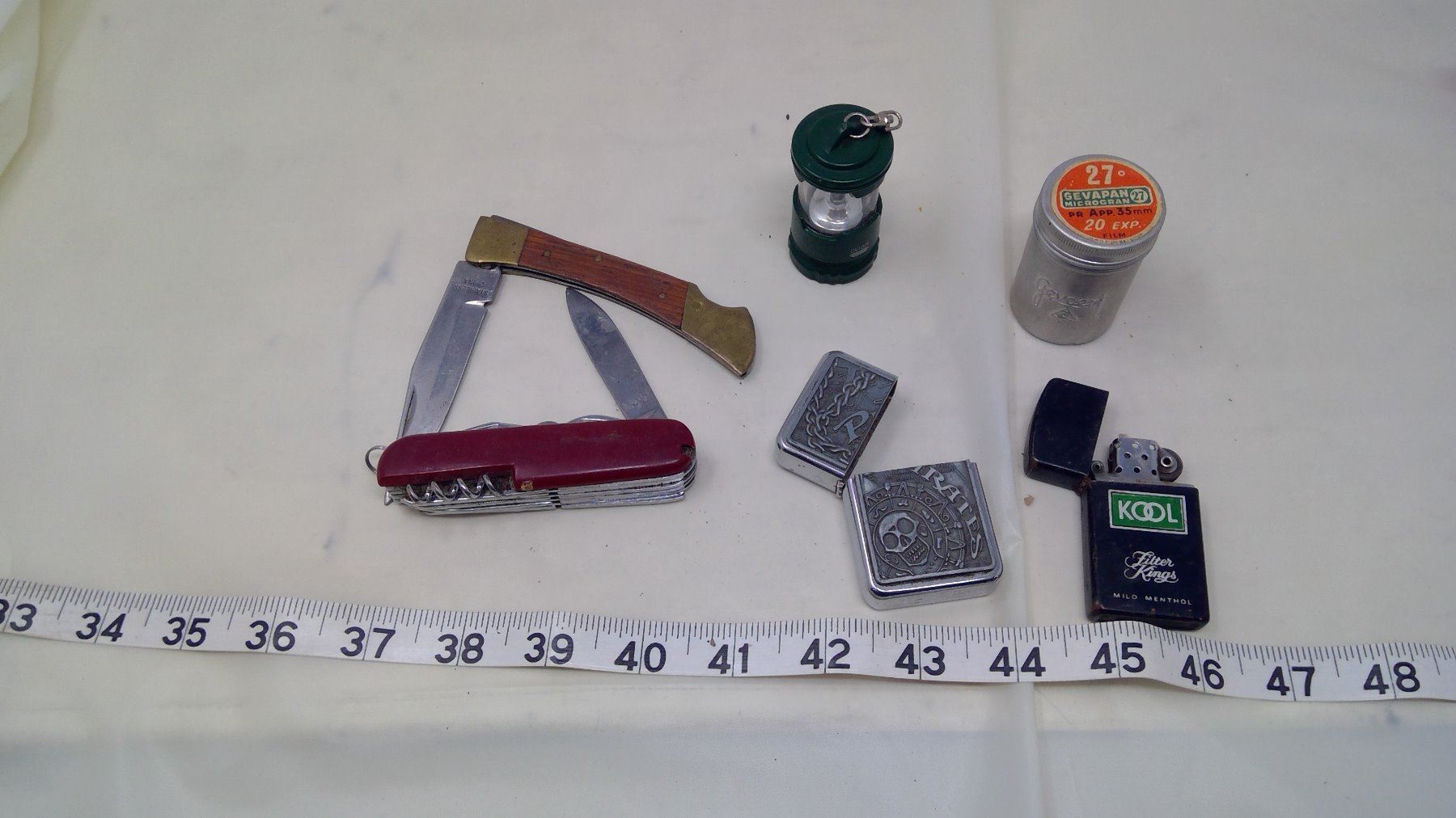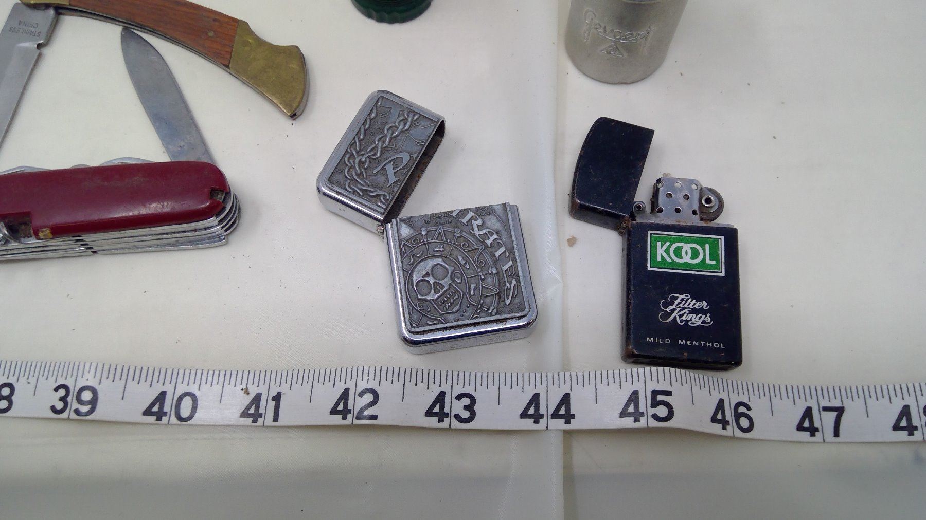LOT OF ASSORTED KNIVES, LIGHTERS, ETC