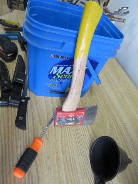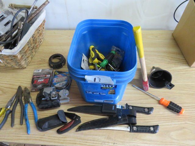 LOT OF ASSORTED KNIVES, SCREWDRIVERS, HATCHETS ETC…