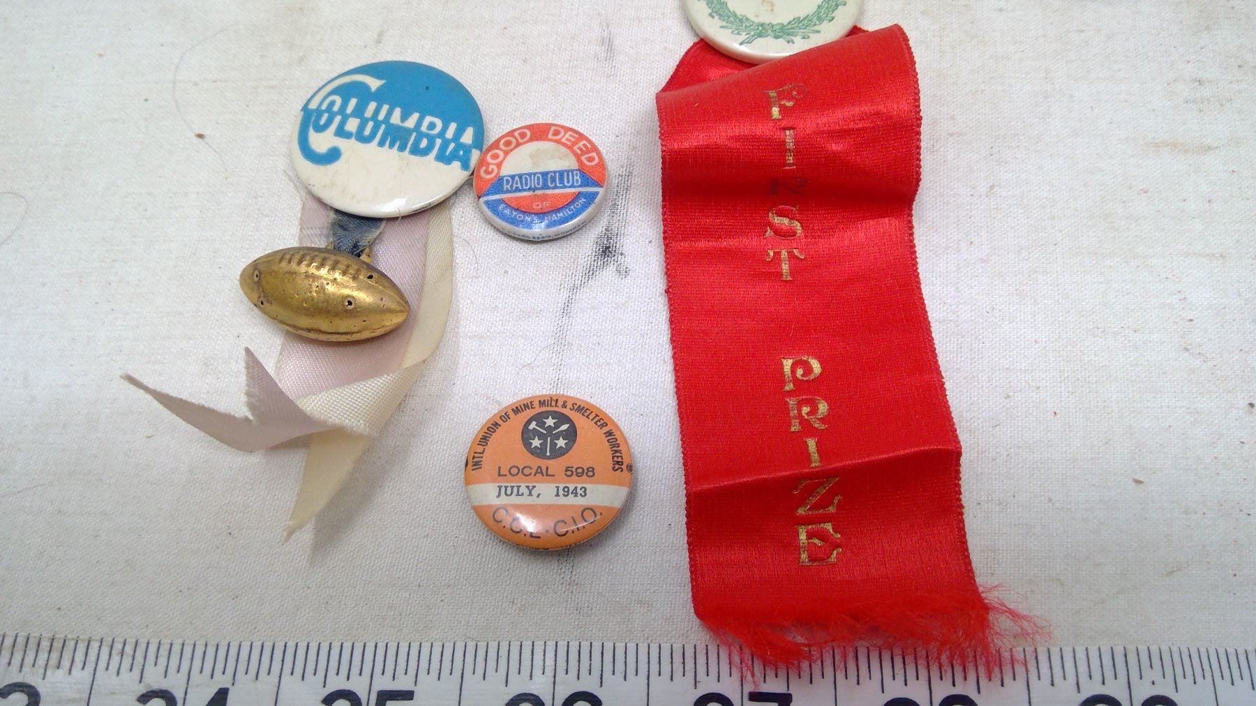 LOT OF ASSORTED PINS, EATONS RADIO CLUB ETC.