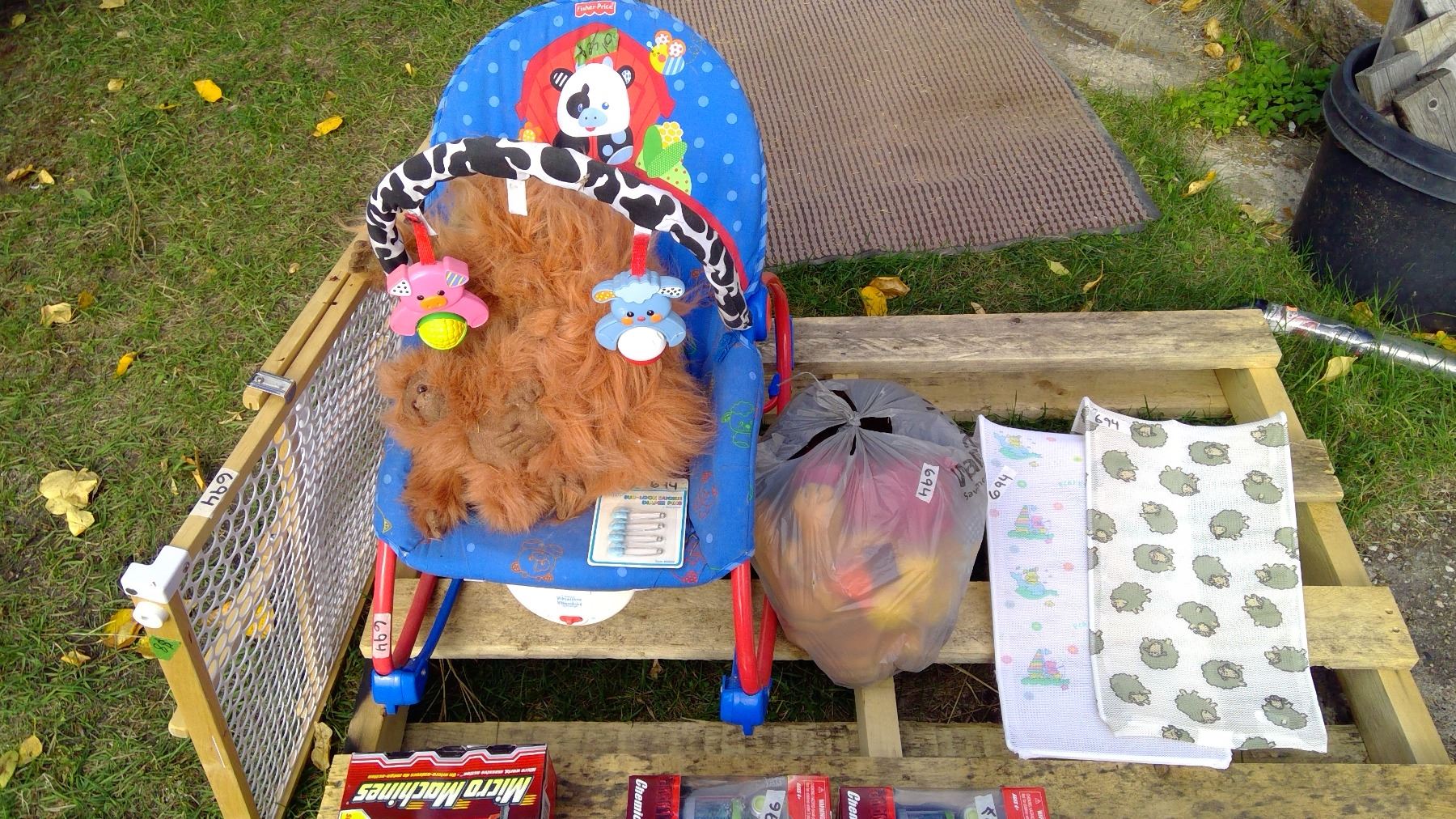 BATH SLING, BABY SEAT, PLUSHIES, BABY GATE